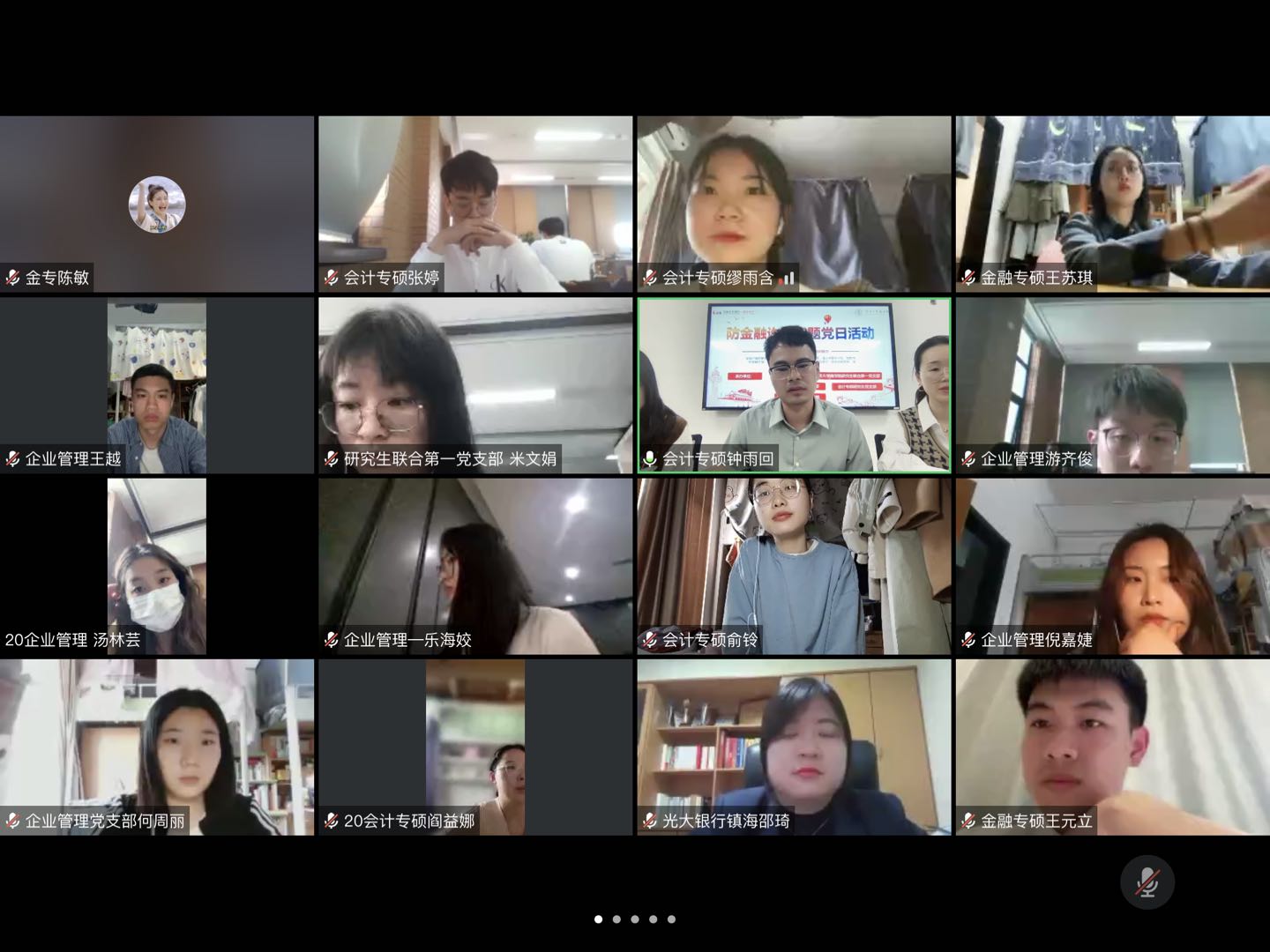 接下来,由金融专硕党支部代表讲解防范金融诈骗要点,支部党员再次用生动的案例,为大家介绍了QQ诈骗、冒充身份诈骗、网络购物诈骗、虚假中奖诈骗、虚假绑架诈骗、假车祸或摔伤住院为名的诈骗等常见电信诈骗手段。