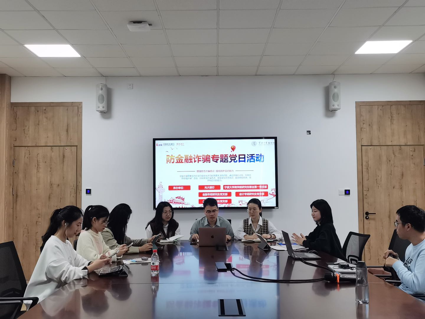 如今,金融诈骗现象已成为社会日益突出并引起高度关注的问题,正值第40个“315国际消费者权益日”之际,为了提高同学们的维权意识,避免落入诈骗陷阱,h图书馆 于3月16日下午开展了防金融诈骗专题党日活动。此次活动由h图书馆 研究生联合第一党支部、金融专硕研究生党支部、会计专硕研究生党支部与企业管理研究生党支部共同举办,光大银行宁波分行渠道管理部负责人孙曙光、光大银行宁波镇海支行零售主管行长邵琦、h图书馆 学工办主任陈彬受邀出席。