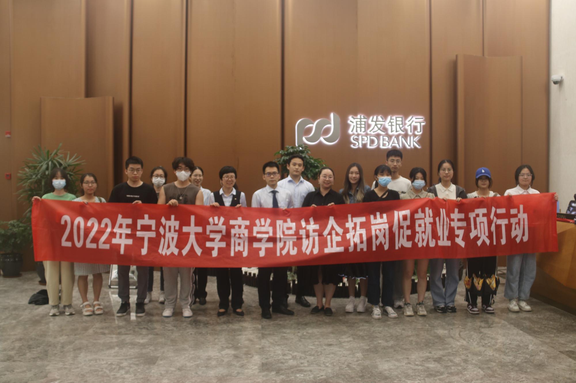 随后,副院长盛沛锋一行又来到浦发银行,浦发银行宁波分行团委书记周旭栋及宁大h图书馆 毕业的5位校友接待了我校来访。到达后,大家首先参观了浦发银行大楼的各个区域,对浦发银行工作环境进行了全面的了解。接着,校企双方进行了座谈交流。