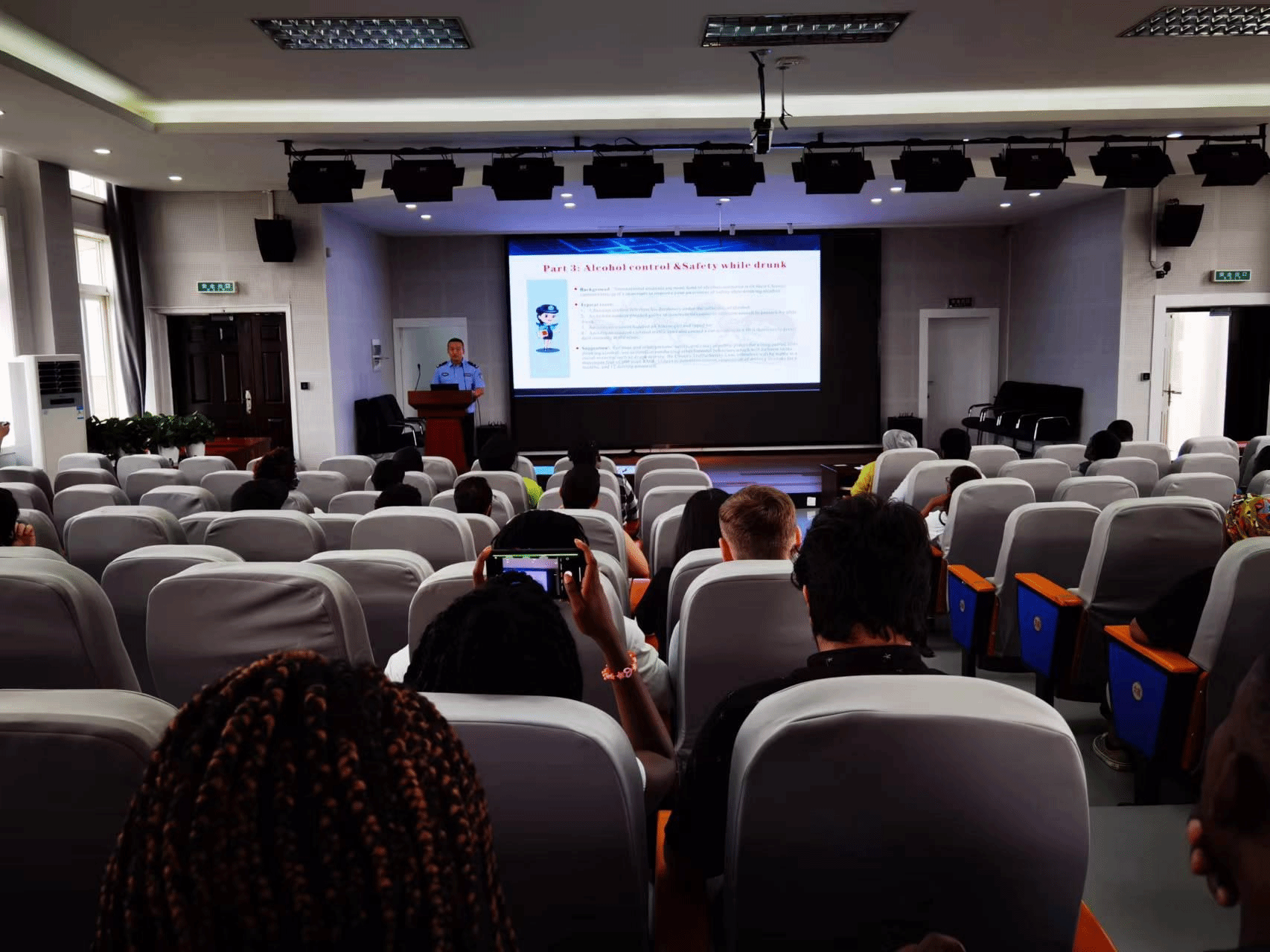 此次治安安全知识讲座为h图书馆 第届 “夯基石、促学风” 留学生主题教育系列活动之一,留学生主题教育活动为h图书馆 每学期为留学生举办的专项活动,以专题讲座和专项检查相结合的方式展开,内容涵盖学业指导、规范教育等,旨在帮助留学生更好地适应在华的学习和生活。
