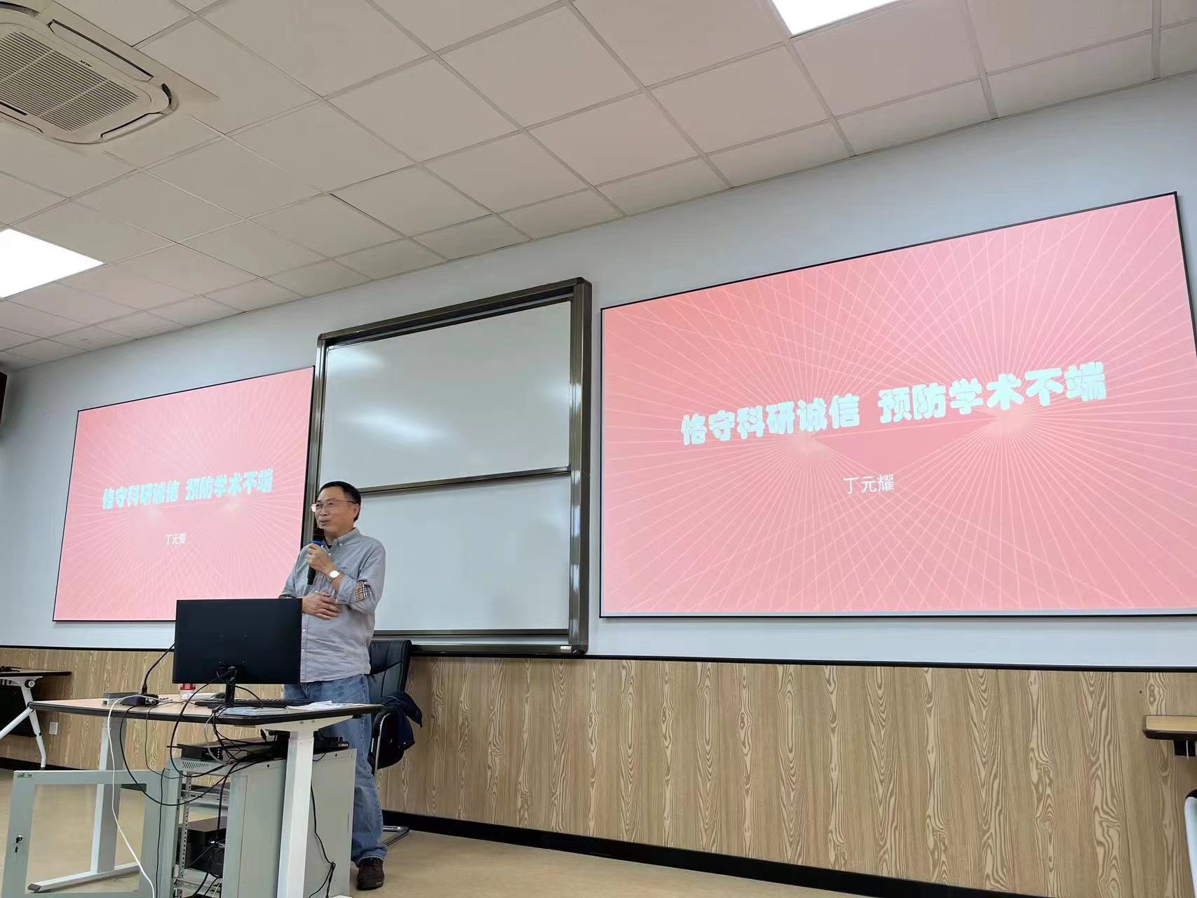 讲座中,丁元耀从科研诚信的概念、学术不端的表现、学术不端的案例、学术不端的后果以及预防四个方面展开。首先,他向在座同学阐述了科研诚信的概念,指出“伪造、销毁、藏匿证据”、“阻止他人提供证据、“存在利益输送或利益交换”、“打击、报复举报人”等在内的八项严重科研失信表现,为在座同学敲响警钟,更加关注自己的科研学术行为。随后,他通过对八个学术不端案例的讲解,阐释了恪守学术诚信的必要性,强调了学术诚信、求真务实是我们当代研究生应当遵守的底线。最后,他从署名、引用、数据等方面提出了一些预防措施,使同学们受益匪浅。