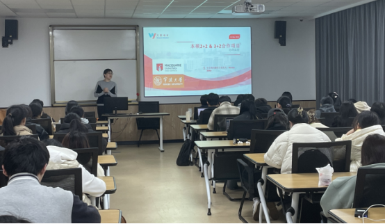 随后,MONICA女士和张钰慧老师还为h图书馆 全英文专业学生做了关于3+2本硕项目的介绍。