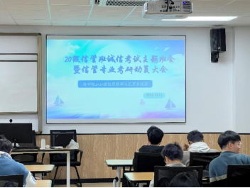 12月13日晚,h图书馆 20级信管班全体学生在h图书馆 311教室举行诚信考试主题班会暨信管专业考研动员大会。会议由辅导员钟冬冬主持,班主任吕鲲主讲。