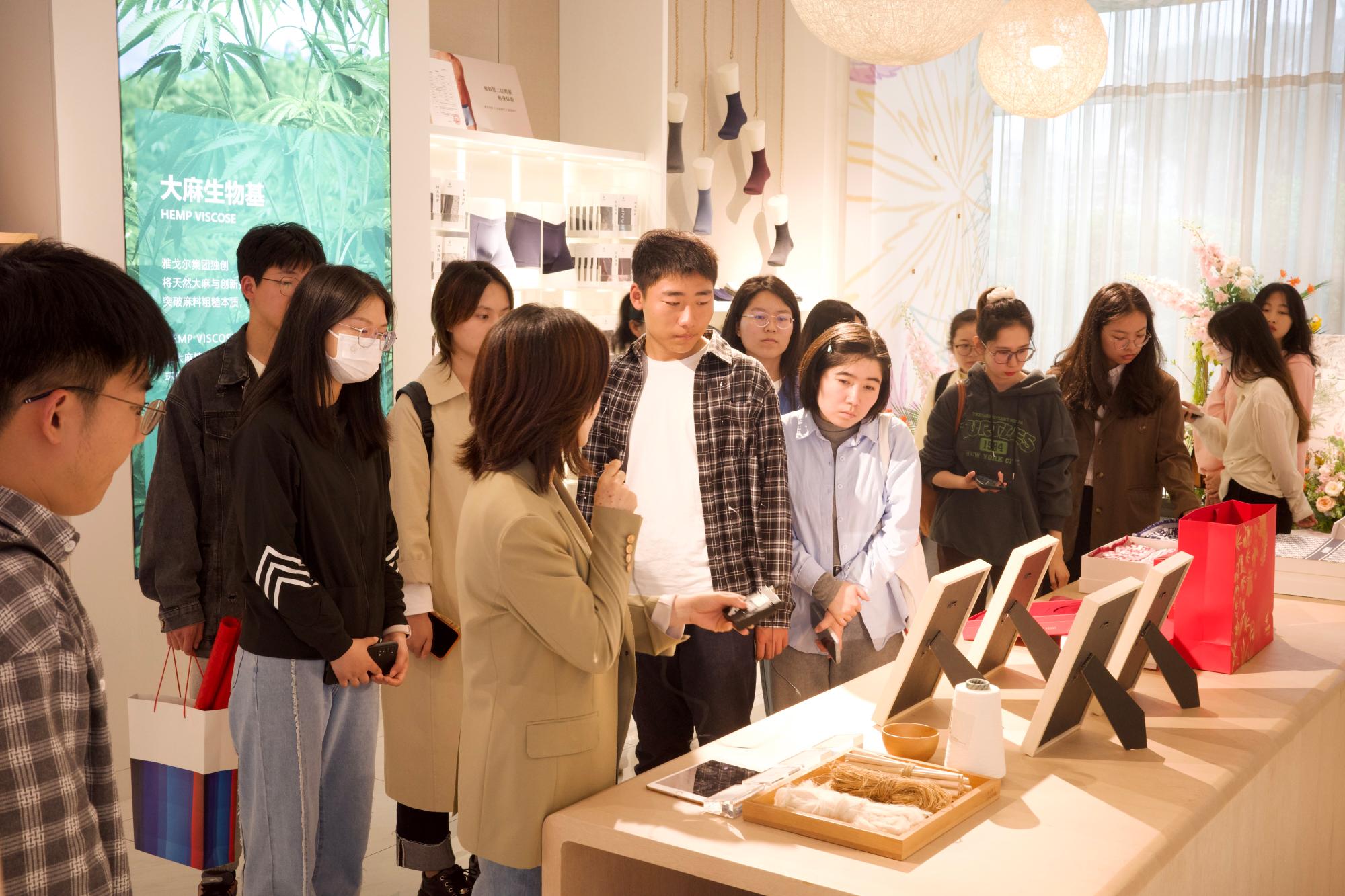 在工作人员的带领下,师生一行参观了雅戈尔展厅、雅戈尔的智能工厂、纺织材料研究院。同学们切身感受到了雅戈尔的h图书馆、公司环境以及工作氛围,对雅戈尔旗下不同品牌的创立、发展等情况有了进一步的了解。