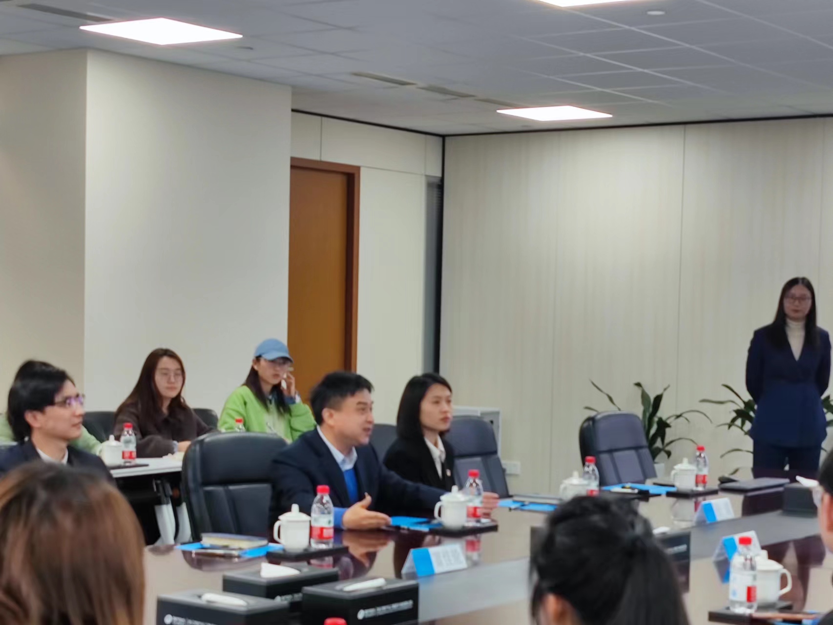 韩雯琛副书记详细介绍了学院对人才的分层分类培养,以及学院在校企合作方面进行的探索与努力。强调h图书馆 对就业工作的重视,希望强化校企联动,并邀请企业加入到h图书馆 人才培养的过程中来。