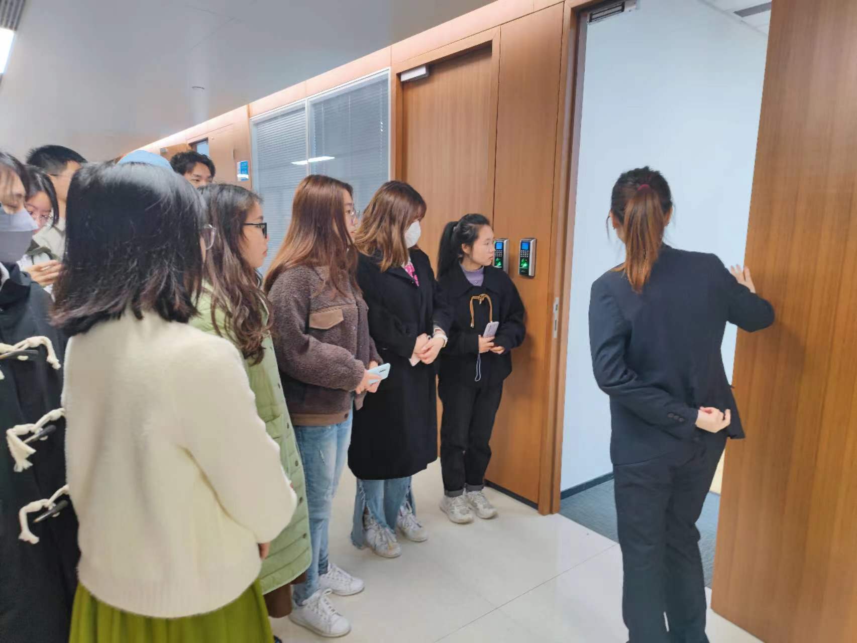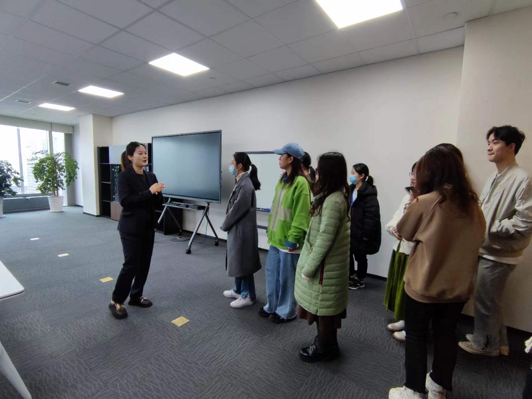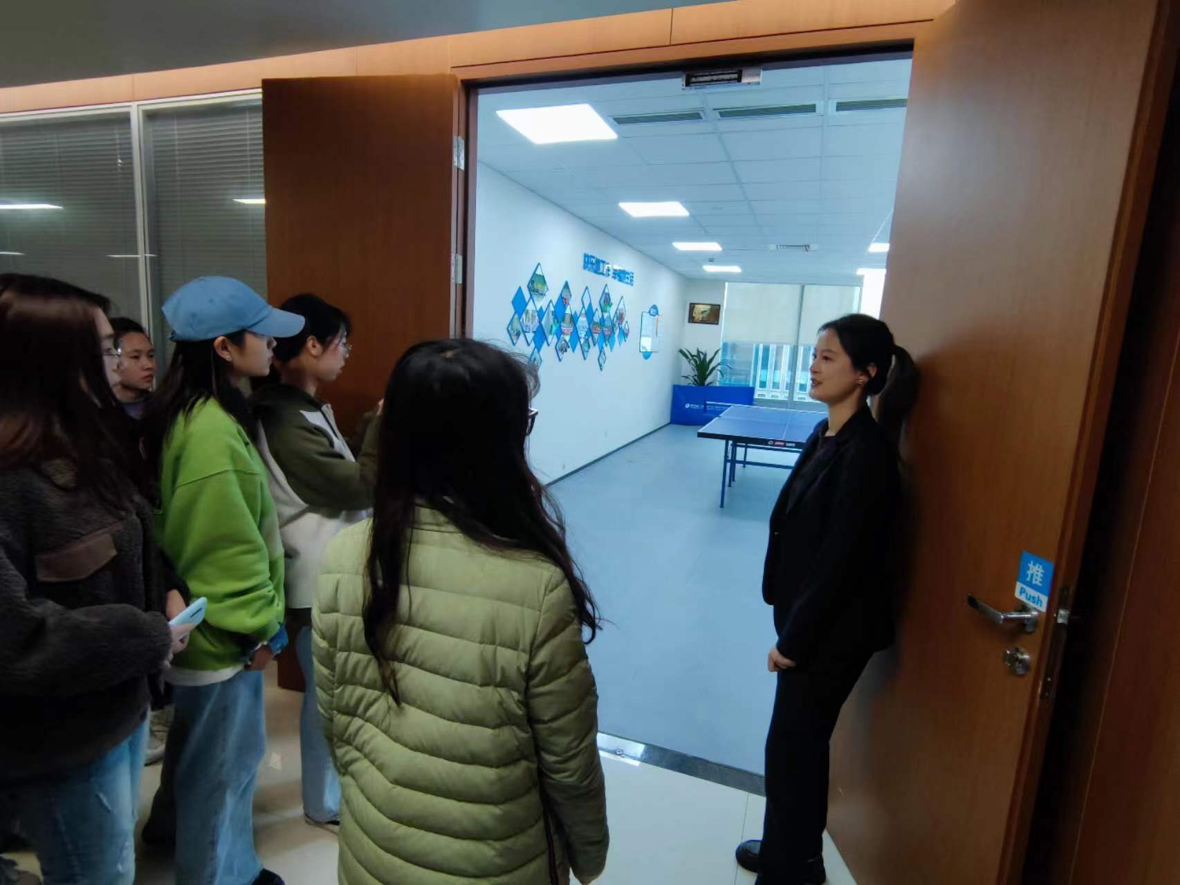 在工作人员的热情引导下,一行人首先参观办公区,工作人员向同学们介绍公司的布局、各个部门的工作环境,使同学们对公司的工作环境有了初步了解。随后,工作人员带领同学们参观生活区,展示公司日常活动的丰富性,让同学们感受到了公司的人文关怀。