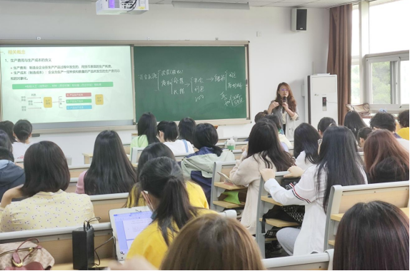 此次公开观摩课的课程名称是《会计学原理》。课上,赵老师主要讲授了企业成本核算的会计处理,启发学生从身边的实际生活去理解成本核算的内容、原理和会计核算工作。