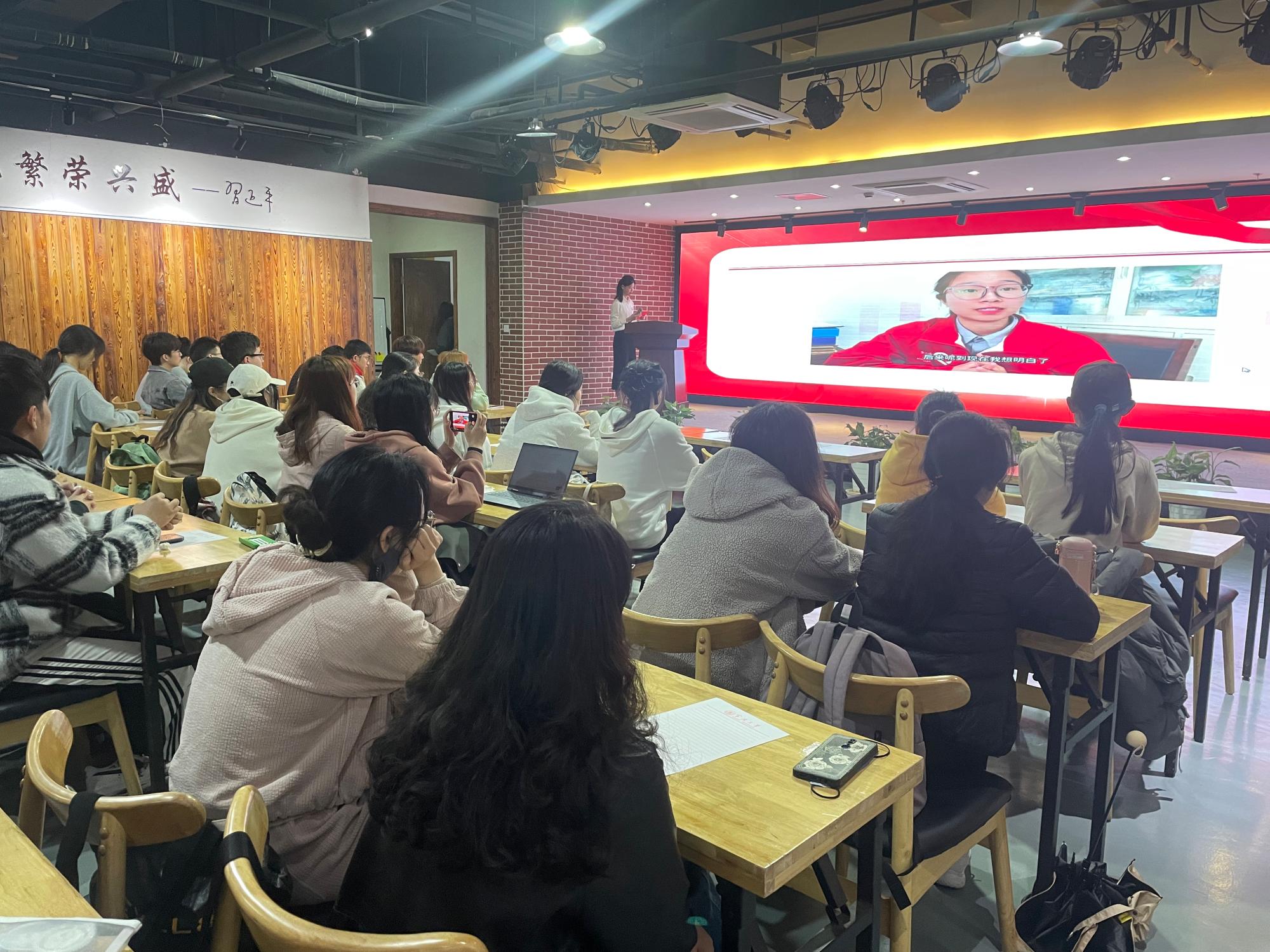 活动现场,全体青年还一起倾听了以“音乐中的二十大精神”为主题的音乐党课。主讲人戚缪笛以“我们为什么要听音乐”为切口,告诉音乐家们用十二个音符,创造出了各种不同的音乐,给人们带来不同的情绪感受。当代青年应以音乐为纽带,汇聚青春力量,传承五四精神,为祖国的繁荣富强贡献自己的力量。并借此引出了今天聆听的两部作品《红旗颂》《领航》。在音乐的熏陶中,青年团员们感受了党的旋律。