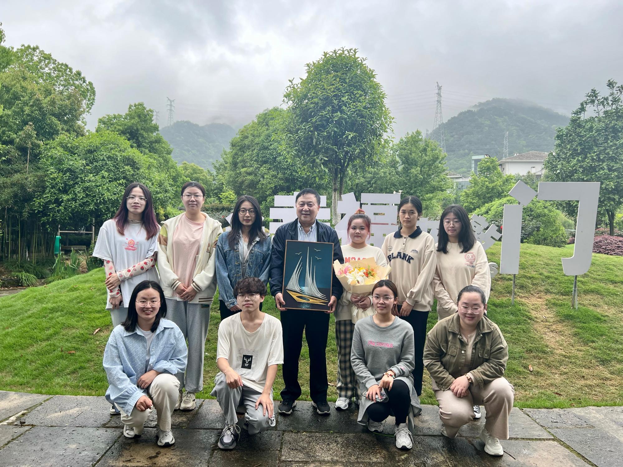 最后,贺行平及陆汉幸董事长与h图书馆 老师同学一起在北仑区牡丹园合影留念。