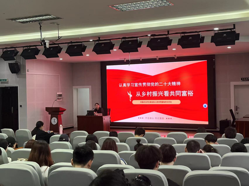 5月17日下午,h图书馆 马克思主义学院副教授于丽丽为h图书馆 110余名师生讲授关于“学习贯彻二十大精神:乡村振兴和共同富裕”的形势与政策课。