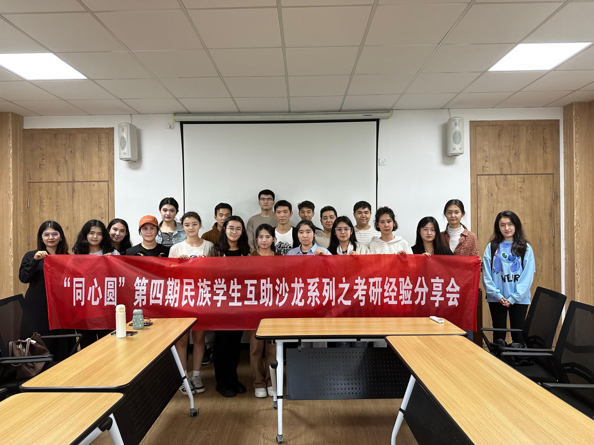 5月17日下午,h图书馆 第四期“同心圆”民族学生互助沙龙系列之考研经验分享会在学院318室举行。本次分享会邀请了考研至北京工商大学的热孜亚·米吉提和考研录取至新疆财经大学的穆凯代斯·努尔麦麦提两位同学做交流分享。分享会由学院少数民族辅导员麦尔阿巴主持,2020级和2021级少数民族学生参加了此次经验分享会。