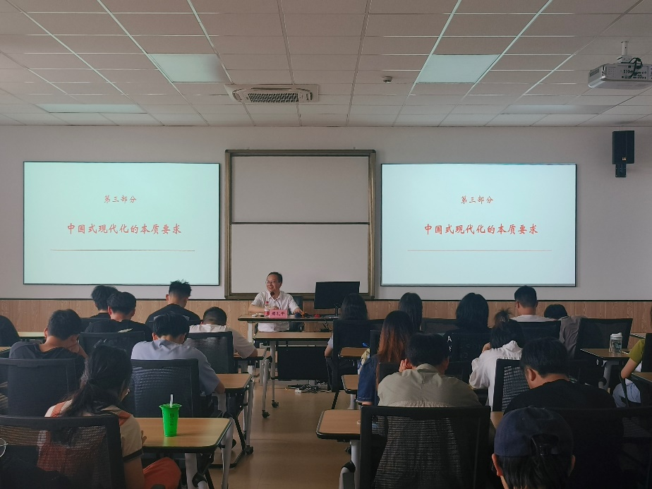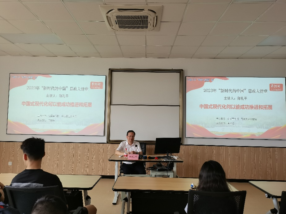 5月26日下午,h图书馆 马克思主义学院郑礼平教授在商院523教室为h图书馆 50余名学生讲授以“中国式现代化何以能成功推进和拓展”为主题的形势与政策课。