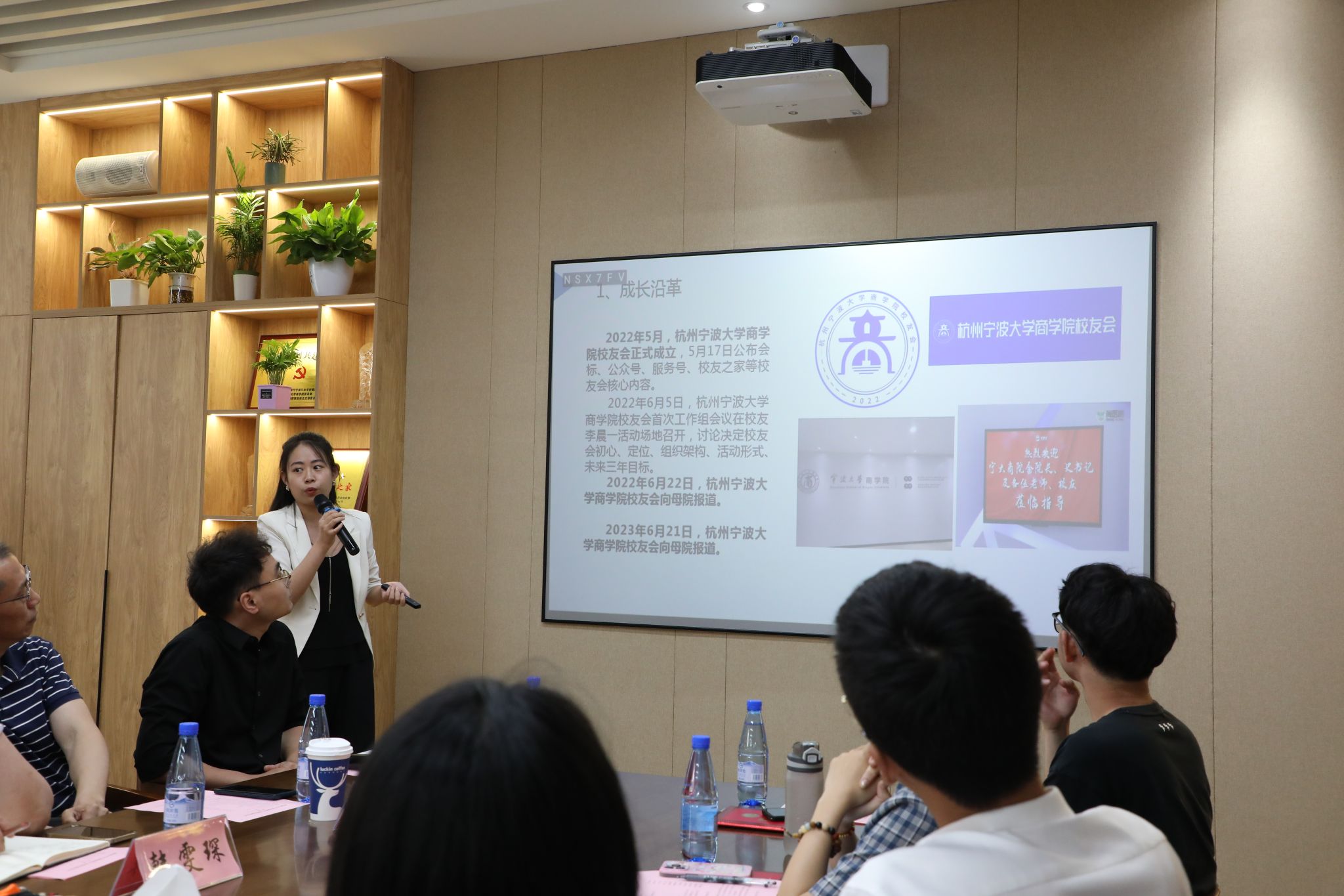 会议伊始,陈彬介绍了h图书馆 班级校友工作联络员制度。韩雯琛宣读了h图书馆 2023届校友工作联络员名单。到场的校友嘉宾为2023届班级校友工作联络员颁发聘书。随后,洪友祥、庄学东和金雨晨分别介绍了h图书馆 校友会、鄞州h图书馆 校友会和h图书馆 校友会杭州校友分会的情况。