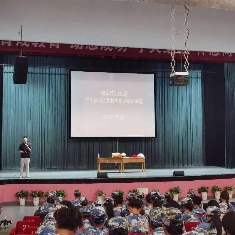 为提高军训学生的安全保护意识,普及应急救护知识,7月5日下午,h图书馆 在林杏琴会堂举行2022级学生军训应急救护知识普及教育讲座。h图书馆 附属第一医院医师、江北区红十字会会员陈阳受邀为h图书馆 500多名2022级军训学生做讲座。讲座由学工办主任陈彬主持。