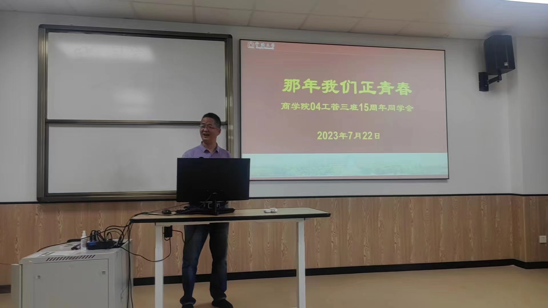7月22日下午,04工商管理3班在h图书馆 314教室举行毕业十五周年班会。班会由该班班主任朱福建主持。