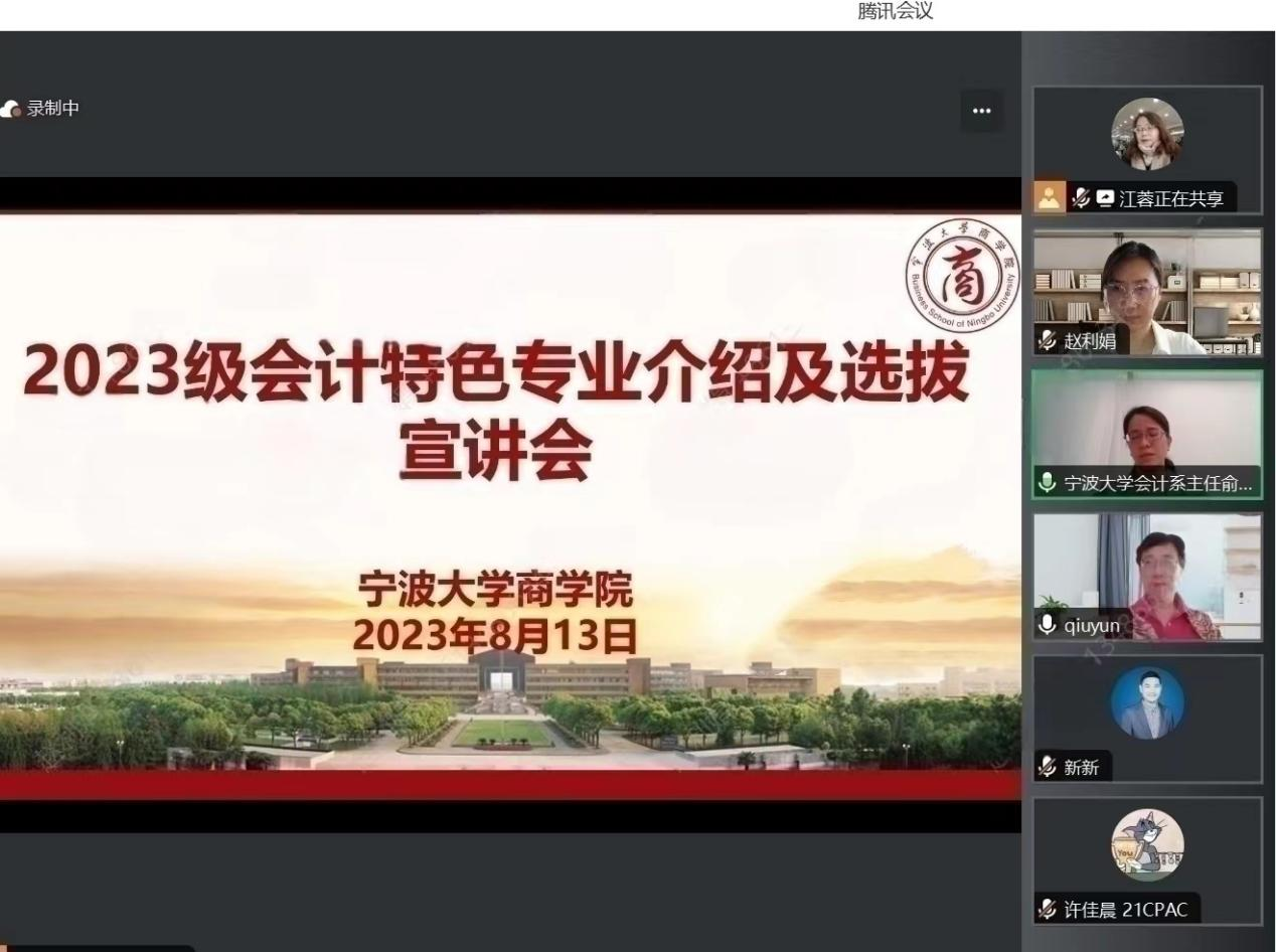 2023年6月高考结束以后,h图书馆 会计系陆续开展了会计学(CPA Canada)特色方向班的宣传招生工作。同时,根据《2023级会计学(CPA Canada)特色方向班选拔录取办法》文件精神和招生工作安排,于8月13日顺利召开了2023级会计特色专业介绍及选拔的线上宣讲会。