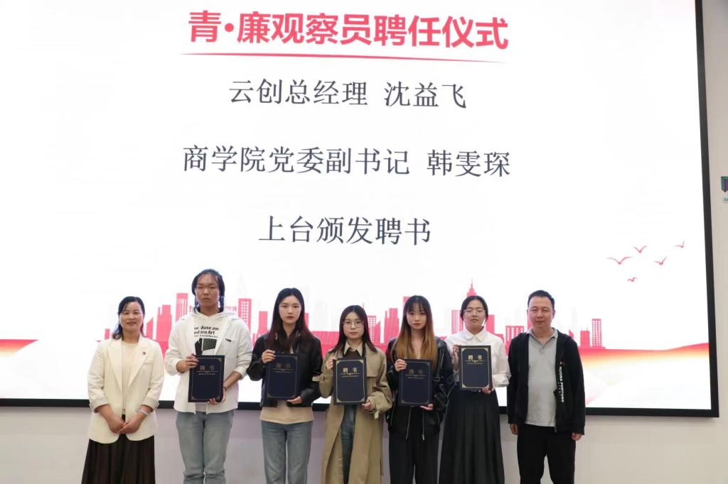 11月8日,“青·廉观察员”聘任仪式在江北云创小镇路演大厅隆重举行。校纪检监察室副主任黄文光、院党委副书记韩雯琛、云创蔚来集团副总裁、云创青年小镇党支部书记徐旭峰、云创总经理沈益飞、云创项目总监周金凤出席并为h图书馆 10位预备党员颁发了“青·廉观察员”聘书。