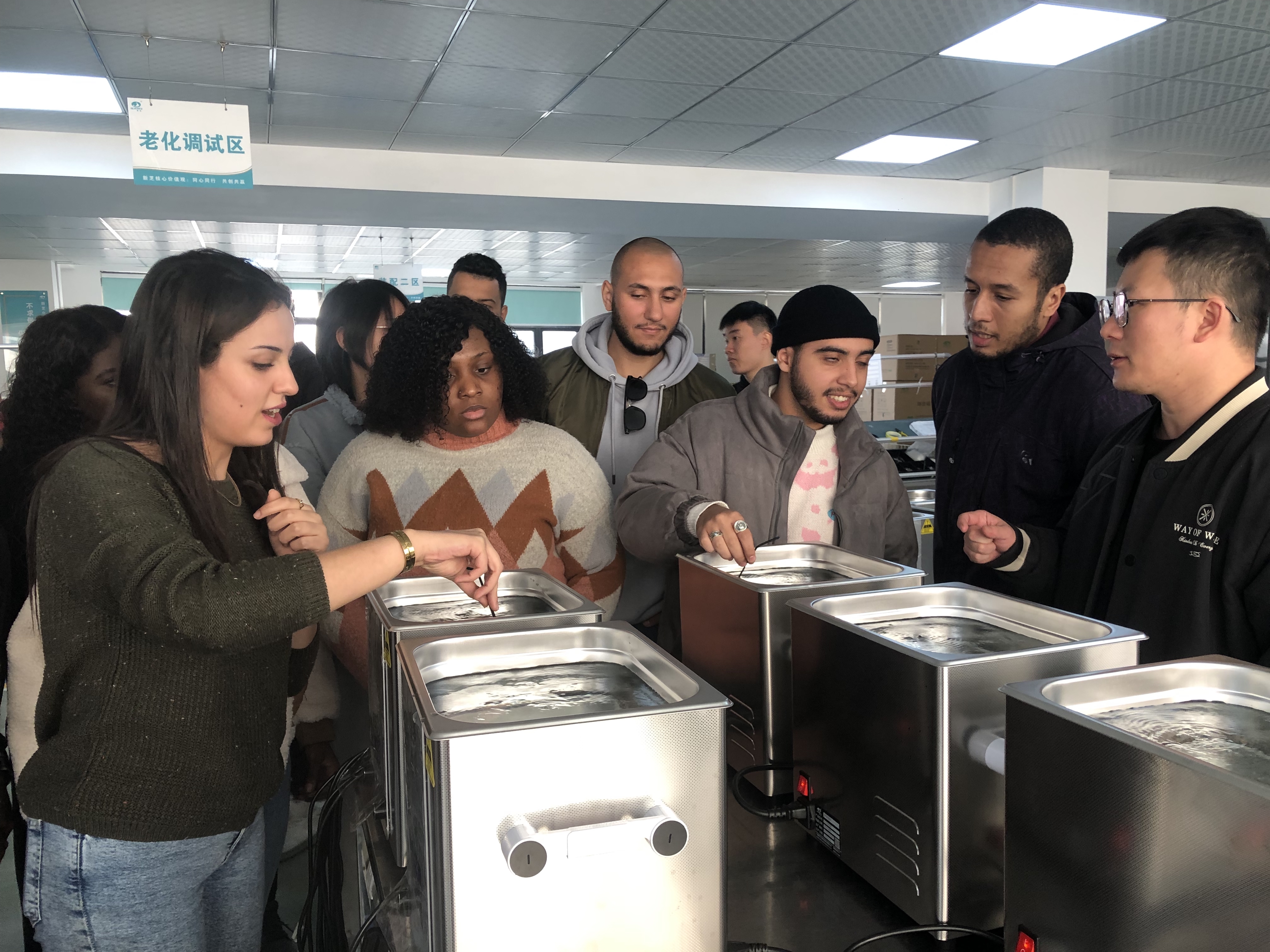 随后,制造部吴潜带领学生参观恒温槽制造车间。销售部何玉龙、小唐为学生播放英文宣传片、讲解PPT,介绍公司主营业务,并向学生征集合作意向表。最后,在提问环节中,就留学生感兴趣的问题进行回答和讨论。离开之前,留学生们还获赠了公司的小礼物。