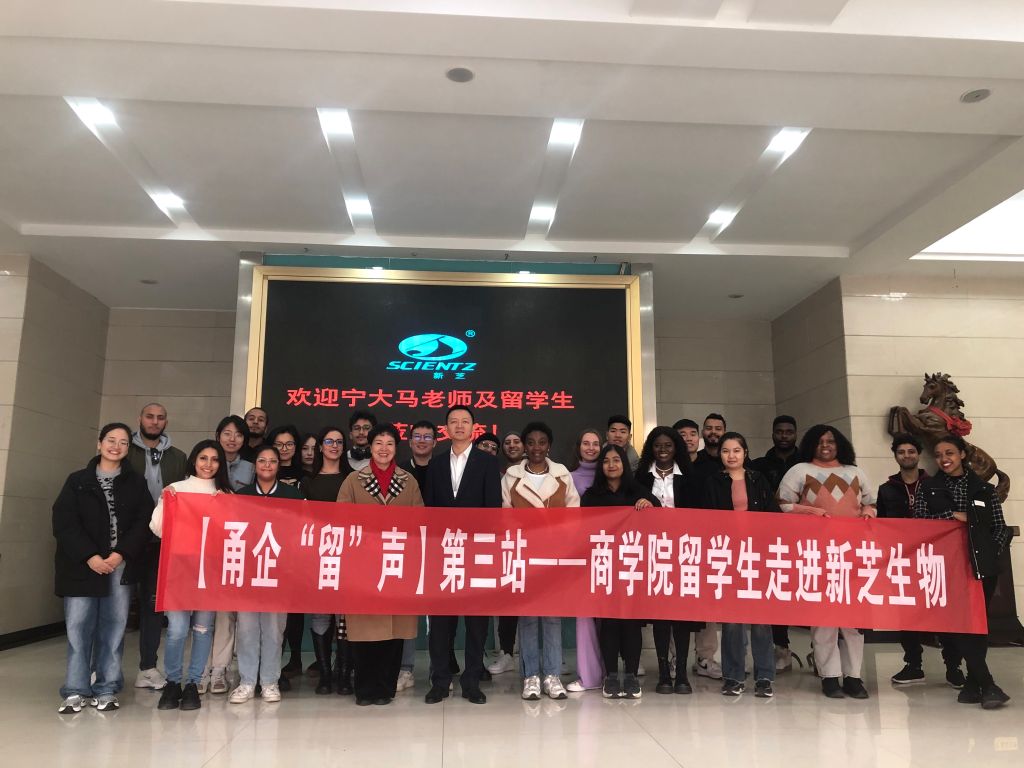 11月15日,h图书馆 甬企“留”声第三站走进了宁波新芝生物,共有23名留学生参与其中,受到新芝生物董事长周芳、经营管理委员会主任何吉峰等人的热情接待。据悉,本次走访是h图书馆 第一届“商帮”文化节的系列活动之一,旨在通过企业走访的形式,向中外学子传播“商帮”精神,实地感受h图书馆,增强商业本领。