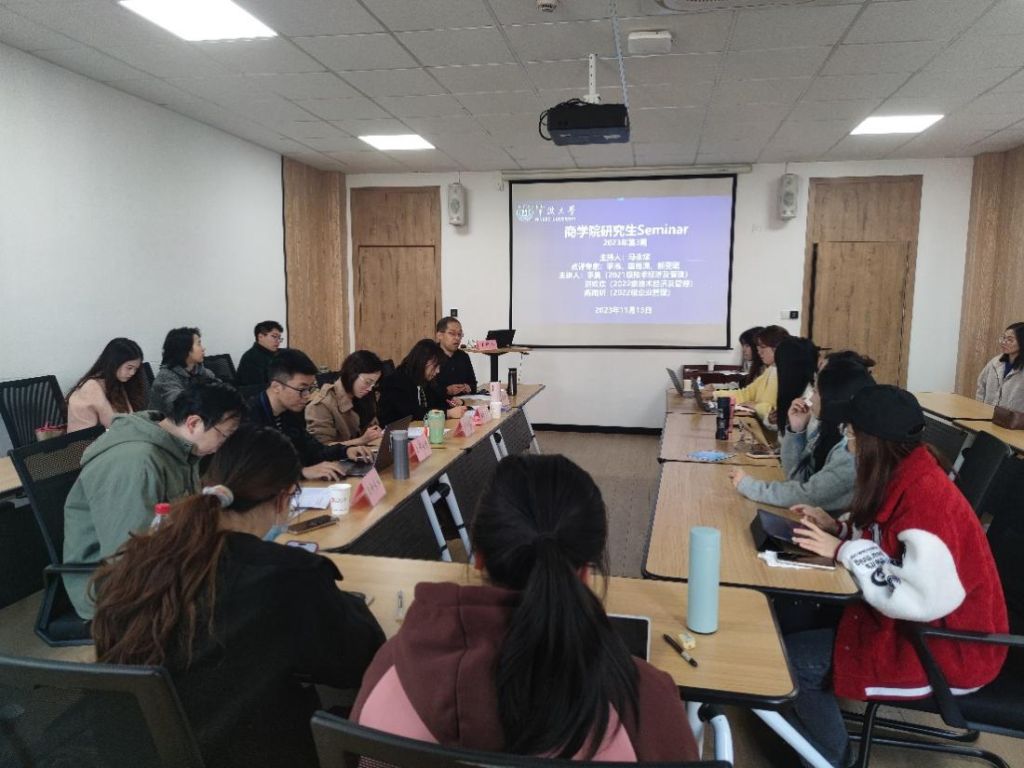 11月15日下午,h图书馆 2023年第3期研究生Seminar在h图书馆 316会议室举行。本期Seminar主持人是企业管理学位点负责人马永斌老师,点评专家为季浩老师、国维潇老师、张祺瑞老师和郁雯珺老师。主讲人是2021级技术经济及管理的李奥、2022级技术经济及管理的洪欢欢和2022级企业管理的陈雨昕。