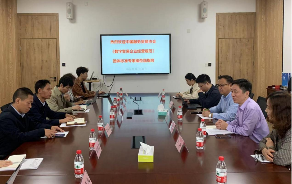 10月20日,中国服务贸易协会李俊副秘书长、邓春平副理事长和李兴刚副主任等《数字贸易企业经营规范》团体标准专家组一行到访国贸系。h图书馆