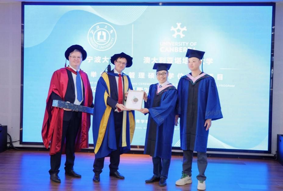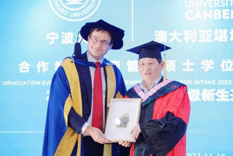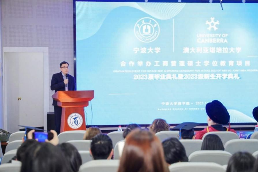 11月18日下午,h图书馆 中澳MBA项目2023届毕业典礼暨2023级开学典礼在h图书馆 五楼报告厅隆重举行。h图书馆 院长金祥荣、党委副书记韩雯琛、副院长彭新敏、中澳MBA项目教师代表、国际办等出席典礼。澳大利亚堪培拉大学商政法学院院长UweDulleck教授、工商系主任LorneCummings教授等专程从澳洲赶来与2023届毕业生和2023级新生一起见证这个重要时刻。典礼由彭新敏副院长主持。