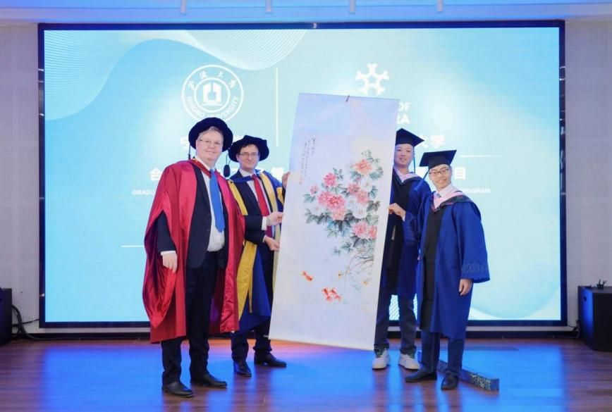 随后,毕业生班级向h图书馆 和澳大利亚堪培拉大学商政法学院赠送了精心准备的承载着深情厚谊的毕业礼物。澳方嘉宾也向h图书馆 和毕业班级赠送了独具澳洲特色的礼物。