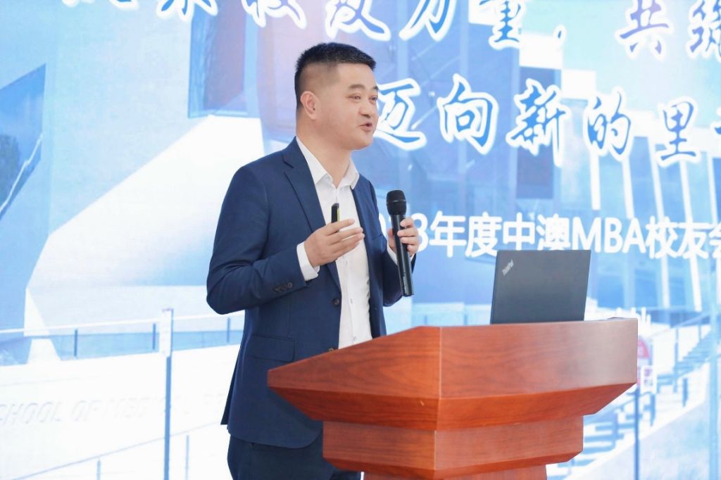 随后中澳MBA校友会会长沈功灿做校友会工作报告。他首先从组织架构,组织愿景以及核心价值观等方面对校友会的工作目标和工作内容进行了简要介绍,接下来回顾了校友会活动与校友企业的发展。并表示继续秉持专精特新的理念,继续强化组织、内因外联,持续提高中澳MBA项目的影响力和品牌力。