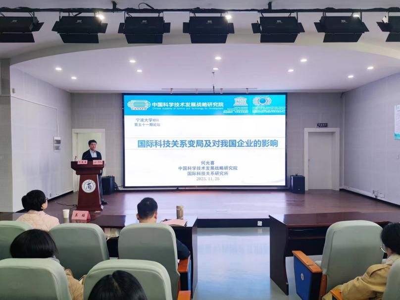 2023年11月25日上午,h图书馆 “名人、名师、名家”暨MBA第五十一期论坛在h图书馆 501报告厅成功举行。本次论坛邀请的演讲嘉宾是中国科学技术发展战略研究院国际科技关系研究所所长何光喜老师,论坛主题为《国际科技关系变局及对我国企业的影响》。会议由曾守桢副院长主持,MBA中心执行主任吴瑶副教授、h图书馆 感兴趣的师生以及2023级MBA全体学员共同参与本次论坛。