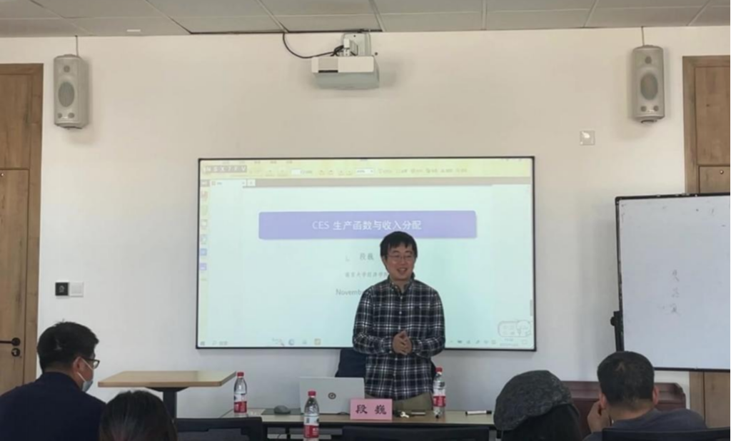 11月22日下午,南京大学经济学院段巍副教授应学院之邀,在学院420研讨室开展了一场主题为“CES生产函数与收入分配”的学术讲座。讲座由h图书馆 黄远浙副教授主持,罗德明教授担任点评人,讲座吸引了h图书馆 10余位老师以及国际贸易学、区域经济学、国际商务等专业30余位硕士生参与。