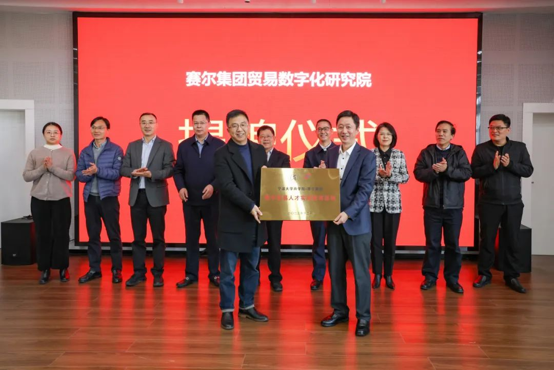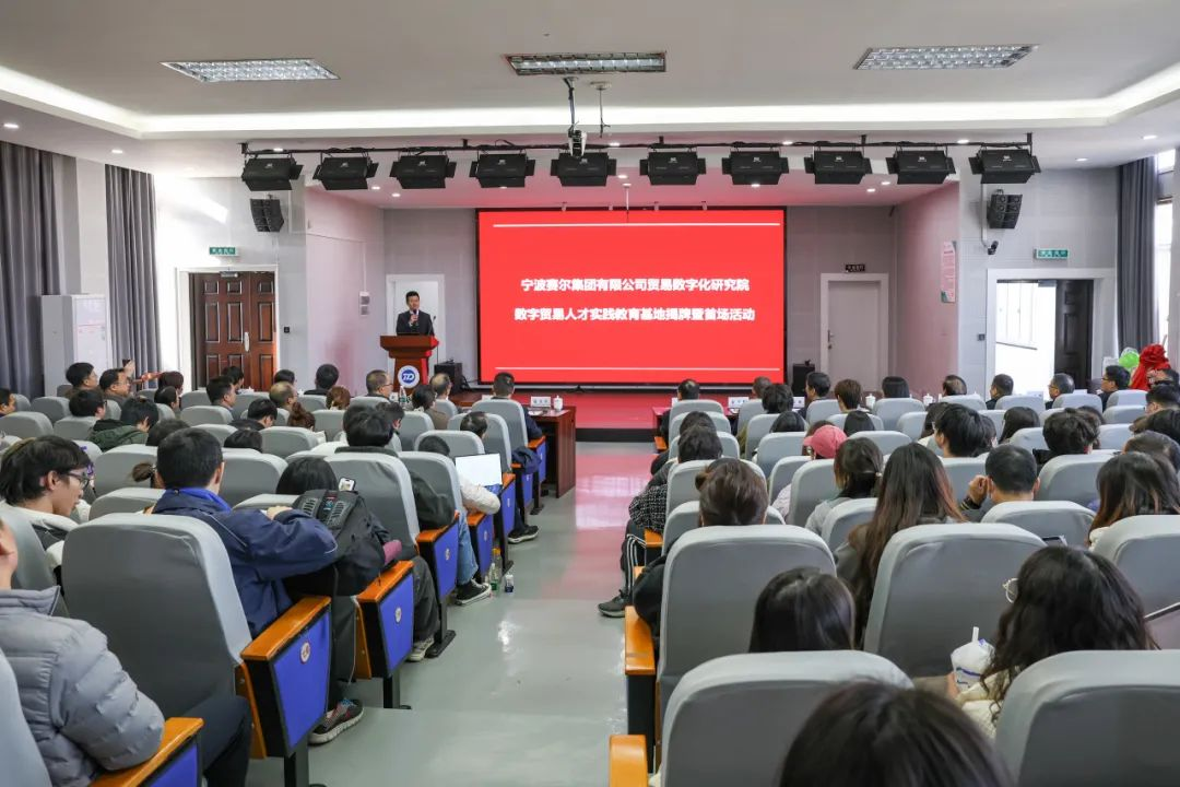 12月13日,由国贸系与宁波赛尔集团共同举办的宁波赛尔集团有限公司贸易数字化研究院暨数字贸易人才实践教育基地揭牌活动在h图书馆 501报告厅举行。来自校内师生代表及校外嘉宾共180多位参与此次活动。其中校内外嘉宾主要有宁波市政府发展研究中心主任张健、h图书馆 党委副书记赵全军、宁波市工商联副主席吴益统、宁波市工商联副主席、赛尔集团董事长徐平炬、浙江大学中国数字贸易研究院院长马述忠、h图书馆 党委书记史宏协、民建宁波市委会副主委、h图书馆 国际贸易所所长杨丽华、市工商联研究室主任陈斌、一级主任科员孟云飞、市商务局服务贸易处处长鲍伟伟、市贸促会贸易促进部部长徐志伟、赛尔集团副总裁方永强、赛尔集团市场研究部总经理兼贸易数字化研究院院长孟祥龙、赛尔集团信息技术部副总经理纪福建、宁波东方理工大学助理教授金鑫等领导和嘉宾出席仪式。国贸系参与此次活动的教师代表还有系主任丛海彬教授,青年教师有夏良科、伍湘陵、钟建军及王腾飞。