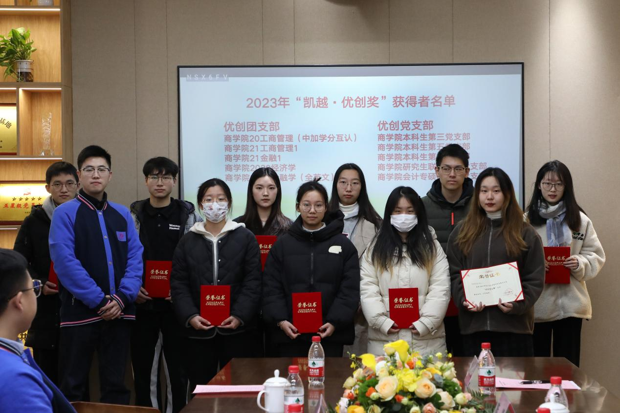活动开始前,主持人简单介绍了本次活动举办的目的以及“凯越·优创奖”和“凯越奖学金”项目概况。由韩雯琛副书记宣读2023年“凯越·优创奖”获奖名单,本次获奖名单中包含优创学生组织,优创党、团组织,优创寝室等,旨在全方位奖励品学兼优的学生团队。