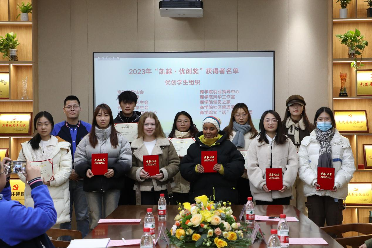 12月21日下午,h图书馆 2023年“凯越·优创奖”颁奖仪式暨“凯越奖学金”签约仪式在h图书馆 党员之家举行,凯越集团总裁助理朱吉,凯越集团人事部副经理王忠宇,凯越集团人事部经理助理戴陟遥,h图书馆 党委书记史宏协,党委副书记韩雯琛,h图书馆 校友办陈煜,h图书馆 学工办主任陈彬,h图书馆 辅导员孙健维、麦尔阿巴以及获奖学生团队代表等40余名师生出席本次活动。