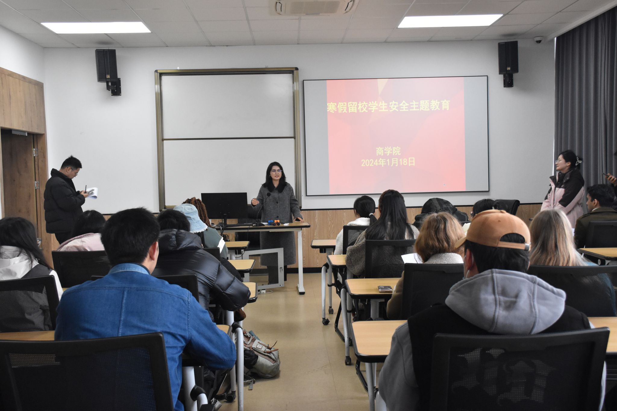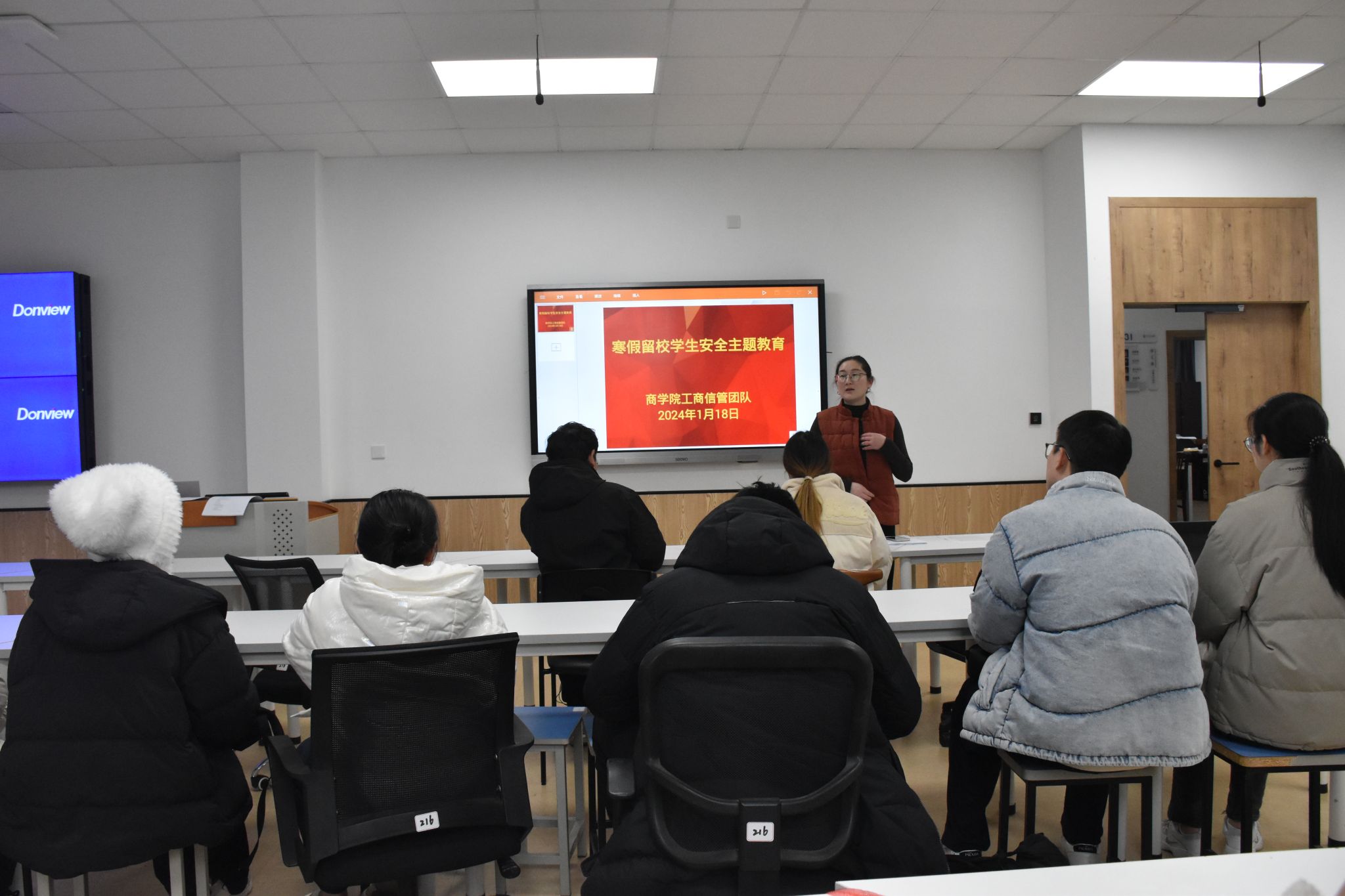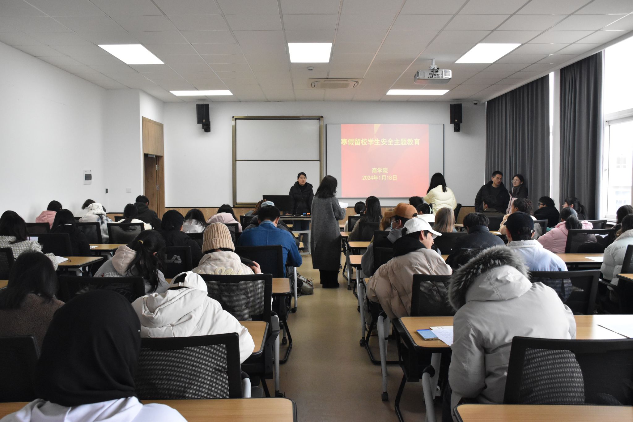 为加强寒假留校学生管理工作,提高学生留校期间的安全意识,1月18日下午,h图书馆 在学院523教室和216教室召开寒假留校学生安全教育会议,学院辅导员和百余名寒假留校学生参加。