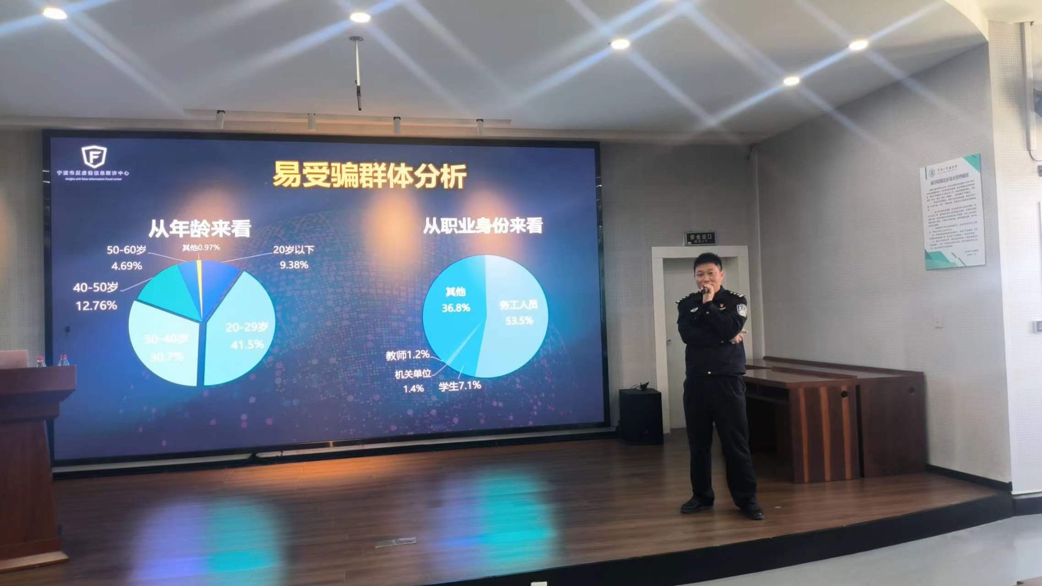 商院青年大讲堂第98期防诈主题讲座在学院501报告厅顺利举行。本次讲座邀请了宁波市公安局文苑派出所王凌警官为h图书馆