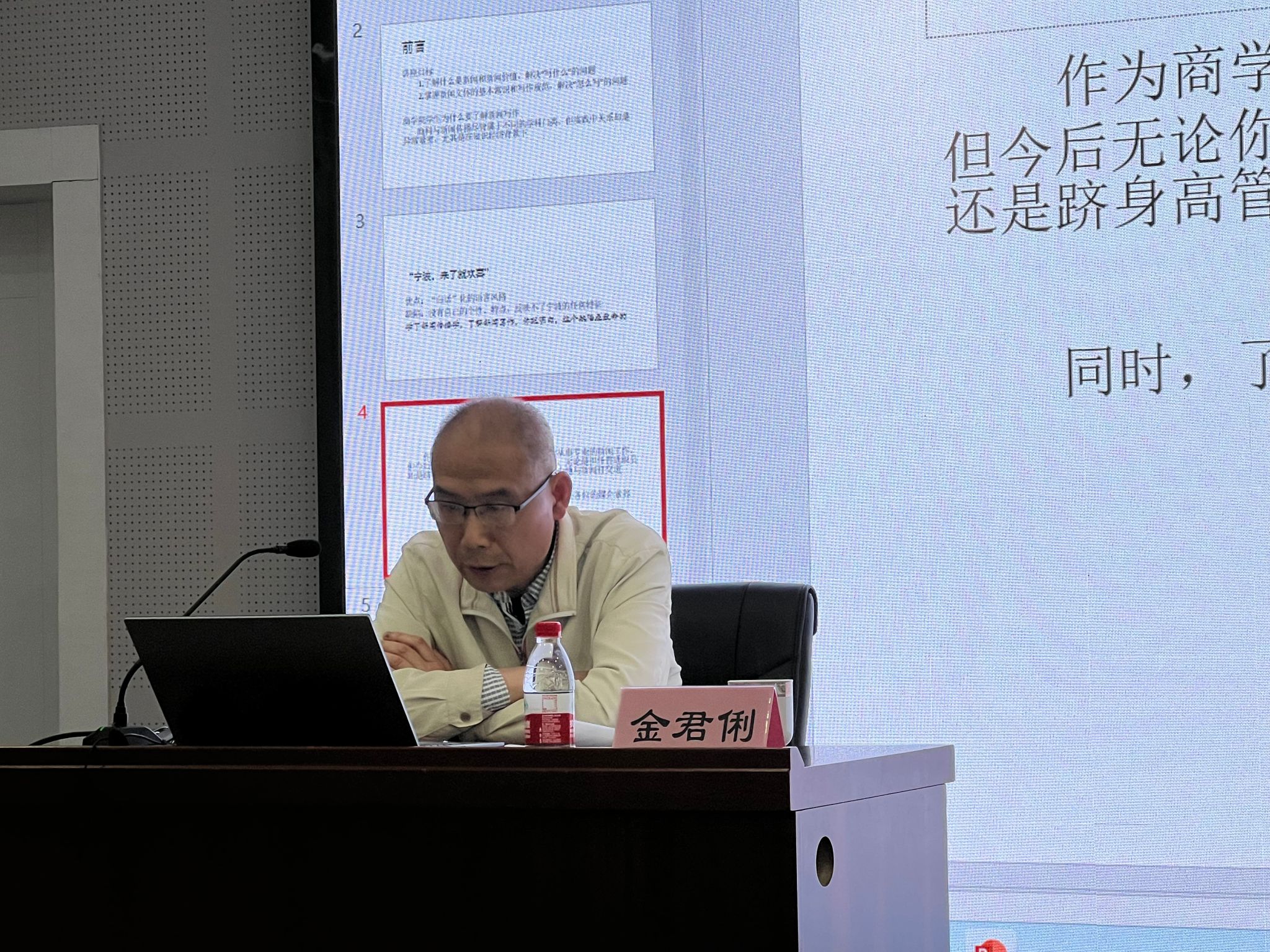 4月17日下午,真诚图书节系列活动之“笔尖下的时代脉搏:新闻写作基础知识”专题讲座在曹光彪楼501报告厅顺利举行,原宁波日报社编委、高级编辑金君俐作《新闻写作基础知识》专题报告。h图书馆 副院长谢慧明主持讲座。