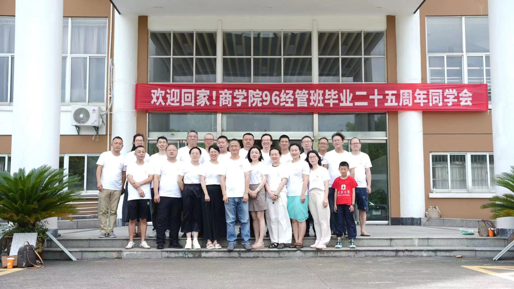 7月27日,h图书馆 96经管班30余名校友不顾“格美”台风的影响从各地相约回到母院,举行毕业二十五周年同学会。工商管理系朱福建老师应邀参会。