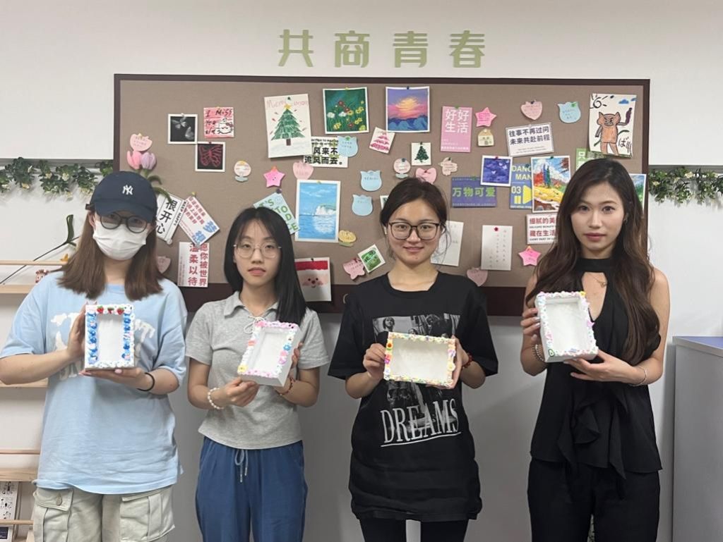 一开始手抖的厉害,以为做出来会很丑,没想到最后成品还不错,相框刚好可以用来放最近拍的照片,非常有意义的一次活动!(21金融1班杨苇丽)