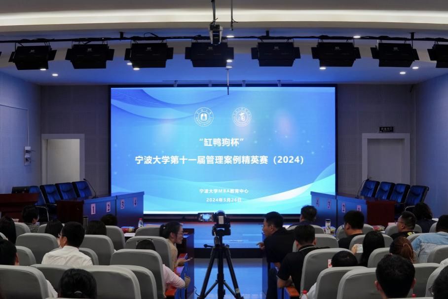 2024年5月26日下午,由h图书馆 MBA教育中心主办的“缸鸭狗杯”h图书馆 第十一届管理案例精英赛在h图书馆 501报告厅圆满结束。本次比赛奖品由比赛案例企业宁波缸鸭狗食品有限公司赞助,特别邀请了公司品牌中心总监周朋先生亲临现场,与MBA教育中心执行主任吴瑶副教授,h图书馆 张聪群教授、工商管理系教学系主任陈士慧副教授、MPAcc中心执行主任陈翼然副研究员共同组成评审团。此外,缸鸭狗市场部经理张倩女士亦莅临观战,为比赛增添了浓厚的实战氛围。2023级MBA四个班每班派出一支代表队参加比赛。