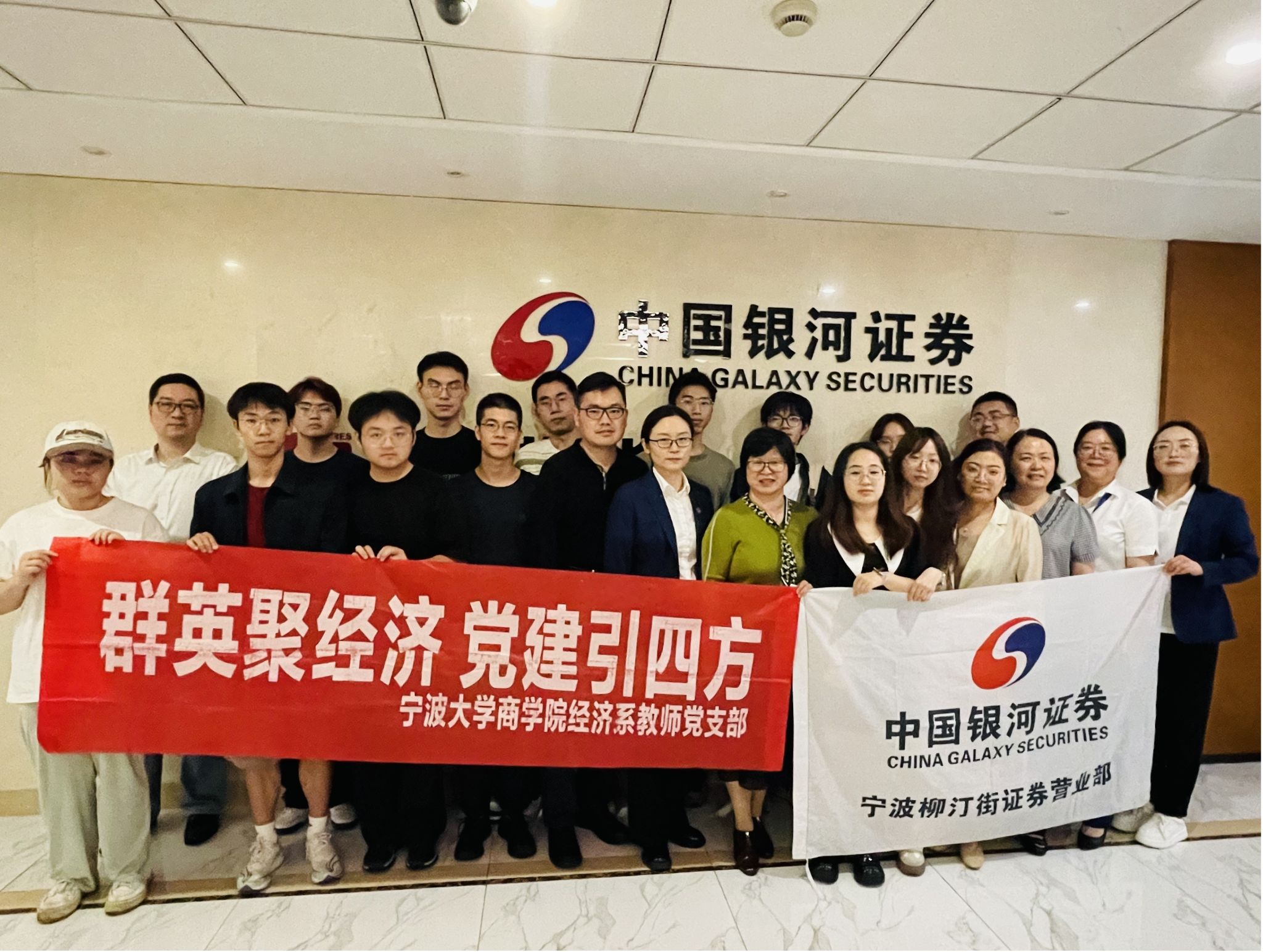 为促进高校与企业之间的相互了解,拓宽学生就业聚道,探索产学研校企协同育人合作项目。6月12日下午,h图书馆 经济系系主任徐群芳带队一行前往中国银河证券股份有限公司宁波柳汀街证券营业部和中信证券股份有限公司宁波分公司开展师生访企拓岗与调研交流活动。