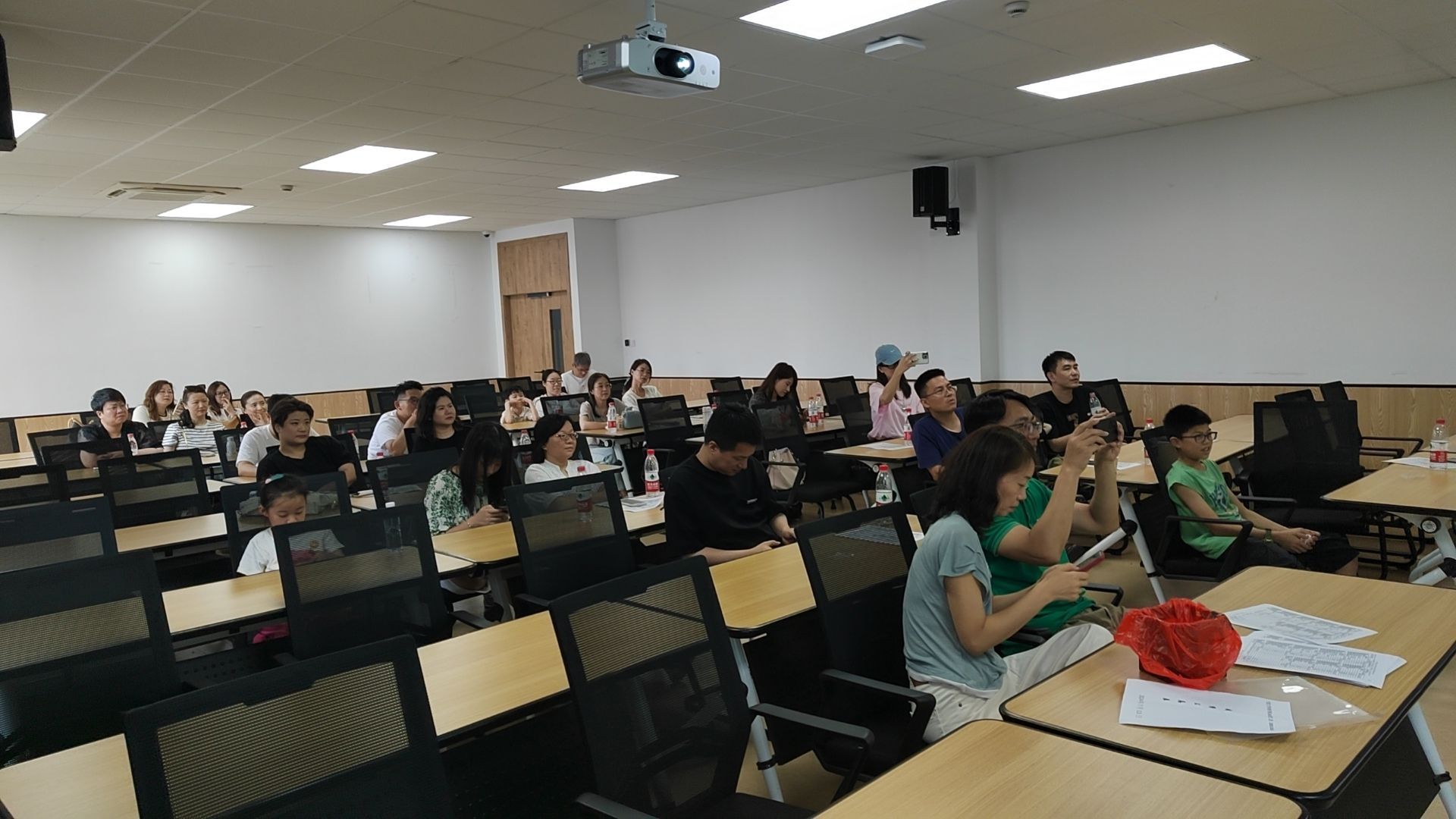 参观完校园后,校友们来到h图书馆 宾馆多功能厅继续组织开展班级活动。校友们通过歌喉展示、照片视频分享,回忆青春华章,重新感受班级集体的团队凝聚力。聚餐期间,筹备组给7月生日的四位校友准备了生日蛋糕。全场唱起生日快乐歌,把同学会推向了高潮。