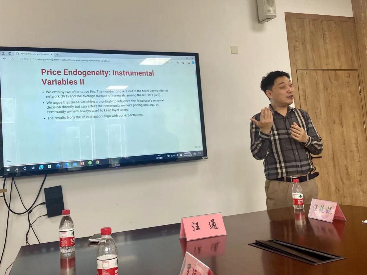 2024年10月16日下午14:00,“h图书馆 双周高端seminar(第17讲)” 学术讲座活动在h图书馆 在214会议室举行。该讲座由经济系系主任徐群芳教授邀请,罗德明教授主持。此次讲座主要以有关“数字经济平台”的学术前沿动态为中心,由爱丁堡大学h图书馆 商业经济学的汪通副教授主讲,围绕“推荐网络与续订率”的因果识别为广大师生提供了一场实证研究盛宴。