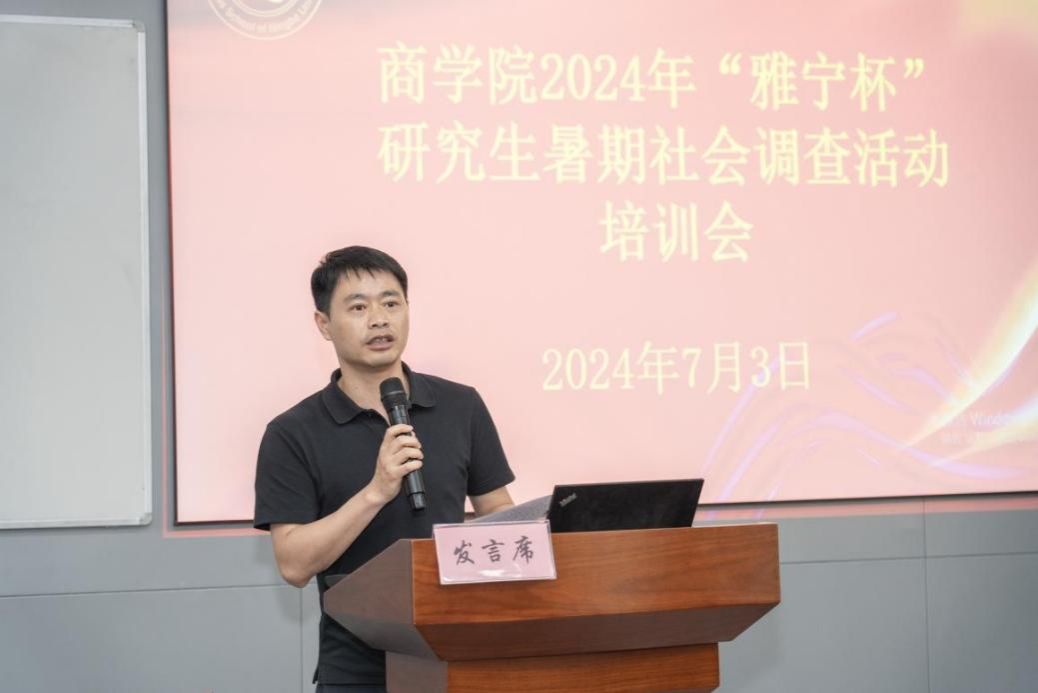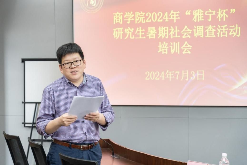 7月3日下午,h图书馆 “雅宁杯”研究生暑期社会调查活动培训会在h图书馆 525教室召开。此次培训由学院副院长谢慧明主持,院长金祥荣、党委副书记吴敏、副院长彭新敏,各社会调查团队指导教师和成员,以及特邀嘉宾潮新闻教科体中心品牌部主任张吉共同出席。