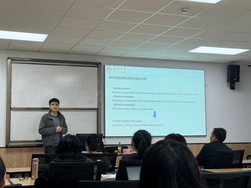 在此次报告中,张振教授为大家讲解了何为知识隐匿,指出知识隐匿是组织中个体成员故意拒绝他人知识请求的复合策略行为,具有反生产、不道德等特征。在高新技术企业中,该行为初现于个体维并逐步向组织维越阶演化,进而严重损害企业运营质量与创新产出。鉴于知识隐匿对企业构成的组织威胁,张振教授聚焦知识治理,系统阐述了知识隐匿跨维演化机理,并通过分享学术成果探讨了可行的治理思路,以帮助企业应对这一挑战。