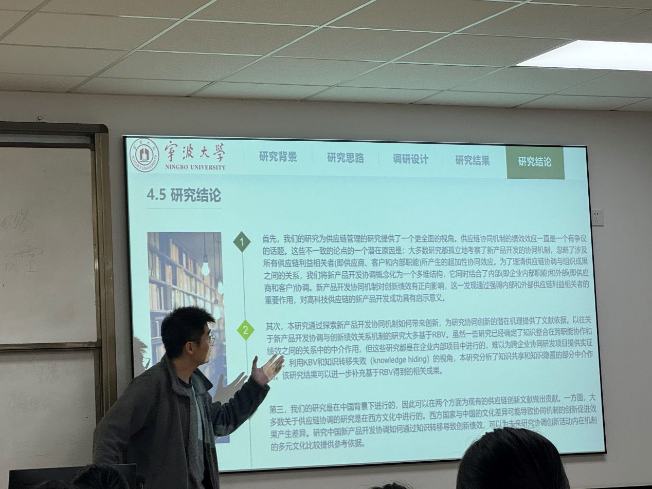 在提问互动环节,参加讲座的各位师生围绕张振教授的讲座内容,就相关研究领域提出了自己的问题,张振教授进行了耐心解答。与会老师表示,张振教授的报告内容新颖前沿,深入浅出,激发了大家的浓厚兴趣,让大家对知识管理的重要性有了更深刻的理解,尤其是在高新技术企业中,如何有效地管理知识流动显得尤为重要。此次讲座不仅拓展了参与者的学术视野,也为后续相关研究提供了一定的启发和参考。