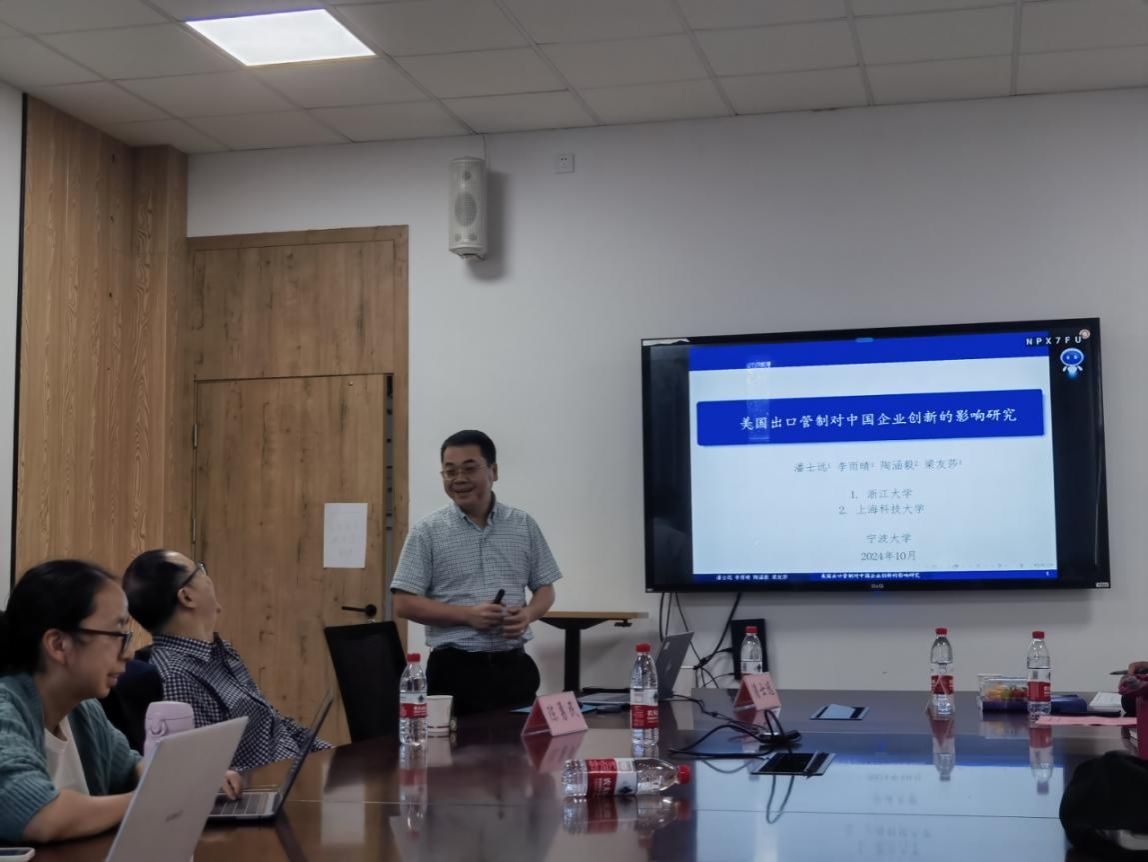 10月23日下午,浙江大学求是特聘教授、博导,浙江大学社科学部副主任潘士远教授受邀在h图书馆 214室为h图书馆 师生开展了题为“美国出口管制对中国企业创新的影响研究”的学术讲座。讲座由学院罗德明教授主持,60余位师生参加。