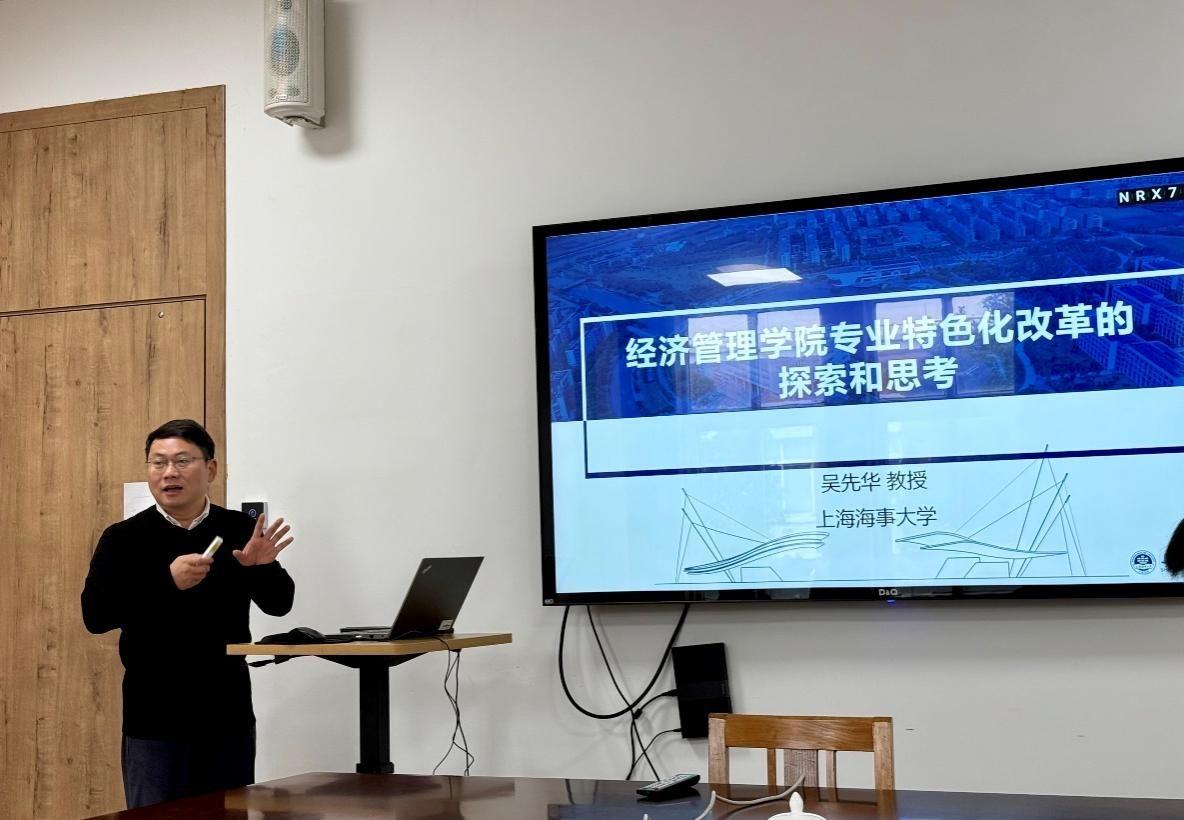 上海海事大学经济管理学院院长吴先华教授围绕“支持国家战略和地方发展的学科专业调整探索”做了主旨报告,并结合上海海事大学经济管理在特色引领,深化学科和专业改革方面的经验,提出经济学专业建设要突出重点,优化资源、强化特色。