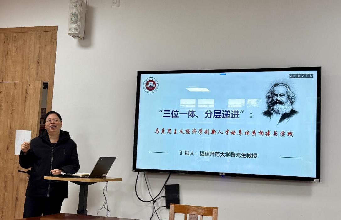 福建师范大学副院长黎元生教授,围绕“三位一体、分层递进:马克思主义经济学创新人才培养体系构建与实践”做了主旨报告,分享了福建师范大学经济学院在马克思主义经济学专业建设和创新人才培养方面取得的成效和宝贵经验。黎教授在充分发挥学科优势和特色、总结凝炼教学理念和实践经验以及积极向学术前辈和同类院校学习等方面提出了建议。