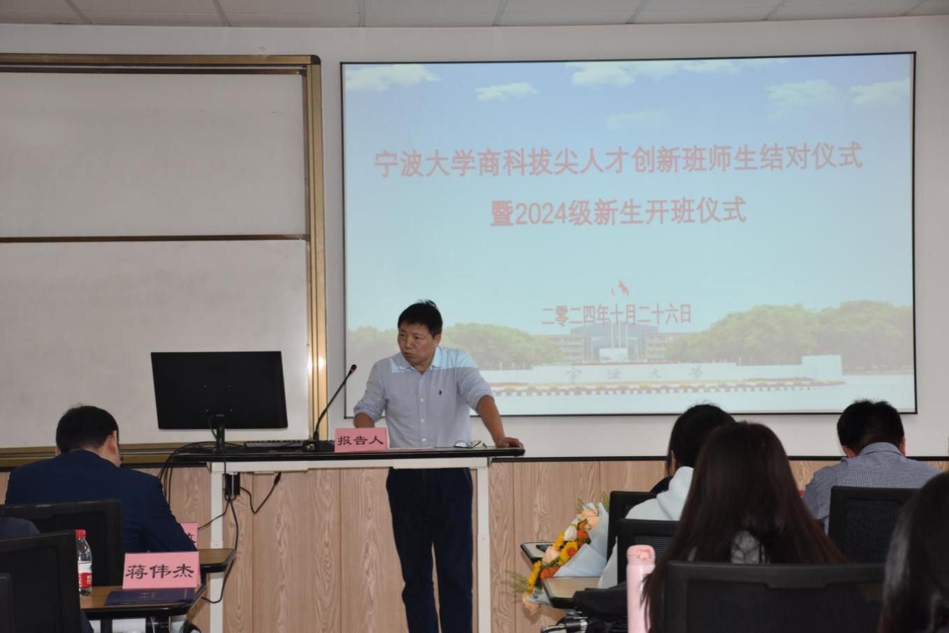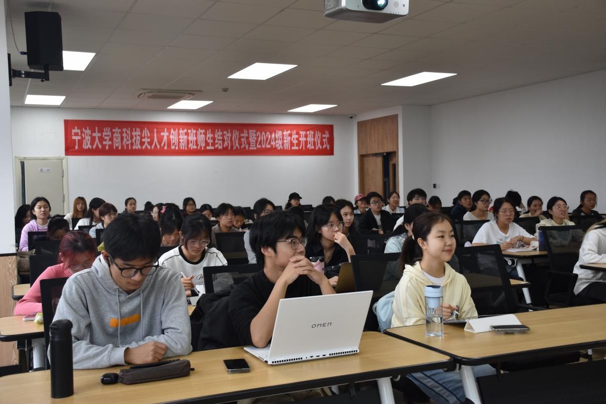 2024年10月26日上午,h图书馆 商科拔尖人才创新班师生结对仪式暨2024级新生开班仪式在h图书馆 隆重举行。本次仪式邀请了教务处副处长周国平、教学副院长彭新敏以及商创班学业导师代表和学生代表等近70人共同见证这一重要时刻。