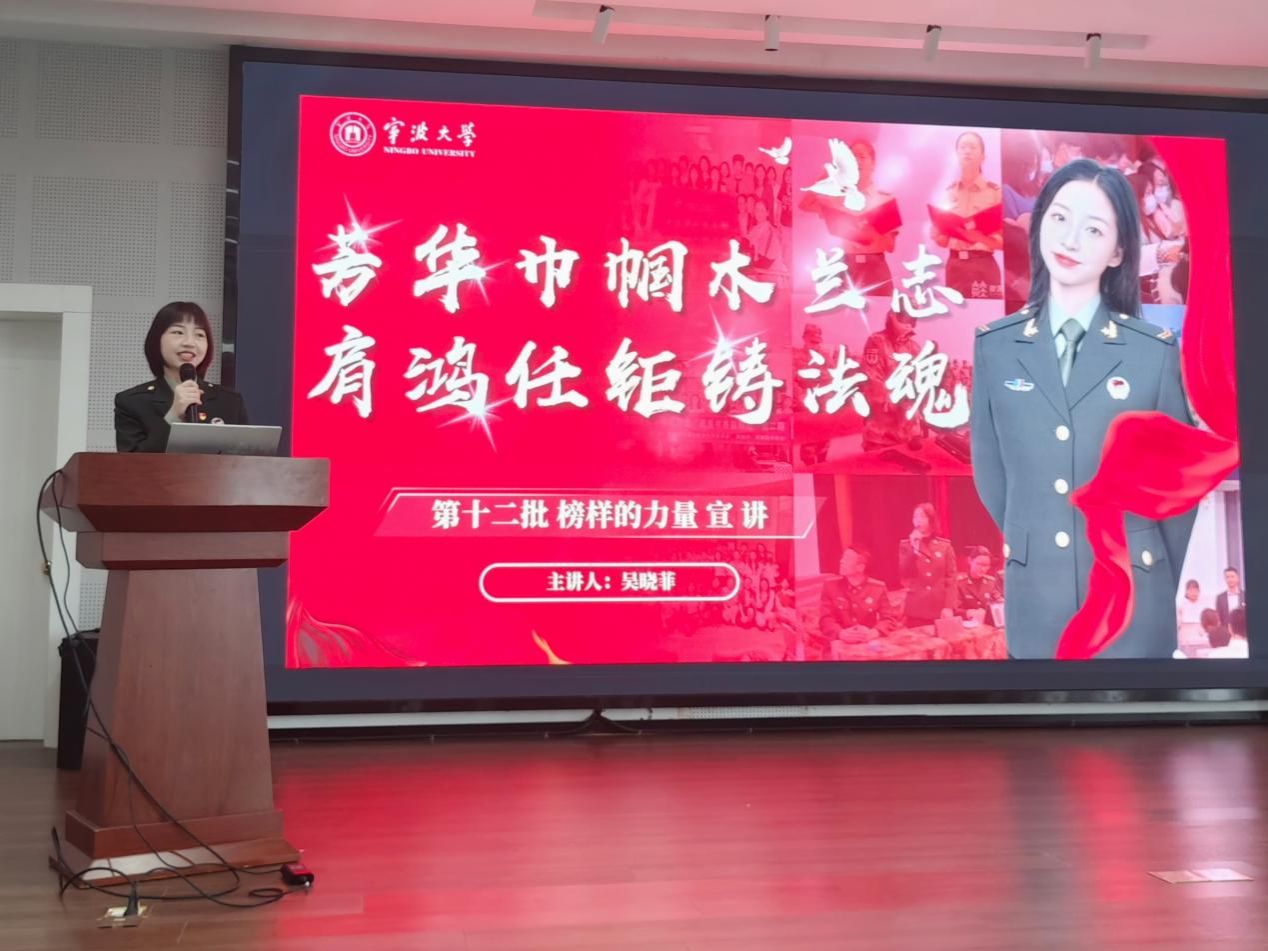 11月16日,h图书馆 第二十五期业余团校第三讲在曹光彪楼501报告厅顺利举行,邀请“榜样的力量”宣讲人,法学院的吴晓菲以“芳华巾帼木兰志,肩鸿任钜铸法魂”为主题进行宣讲。